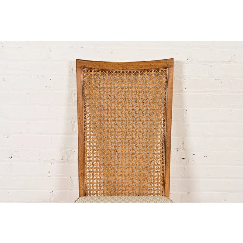 Sculpted walnut frames, with cane backs and upholstered seats.