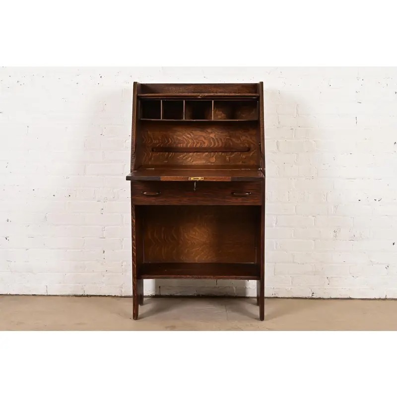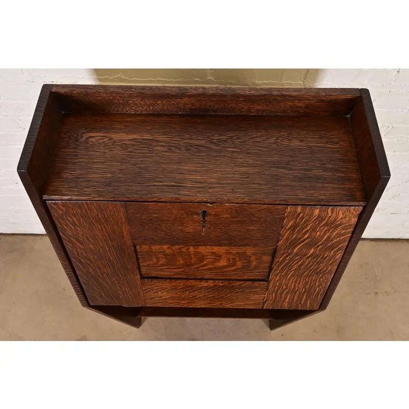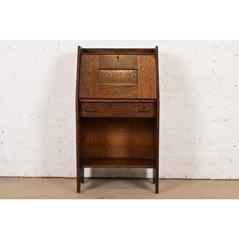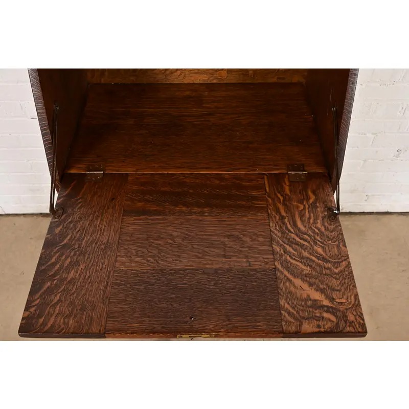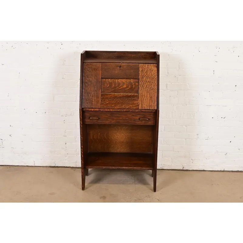 A rare and exceptional antique Mission or Arts & Crafts period quarter sawn oak drop front secretary desk