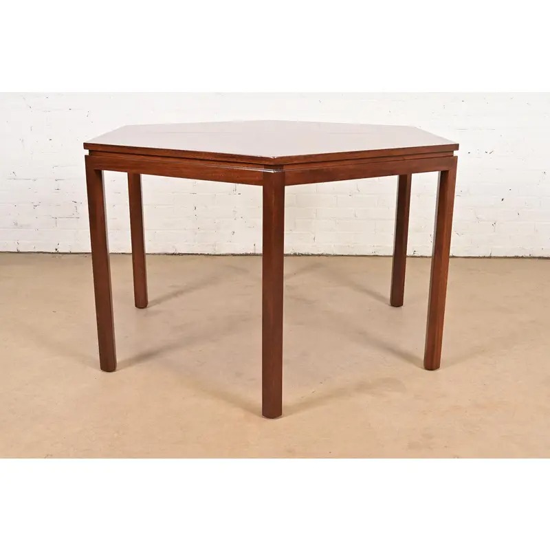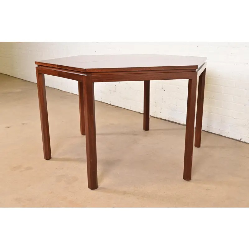 An exceptional Mid-Century Modern hexagonal dining table or game table in gorgeous book-matched rosewood