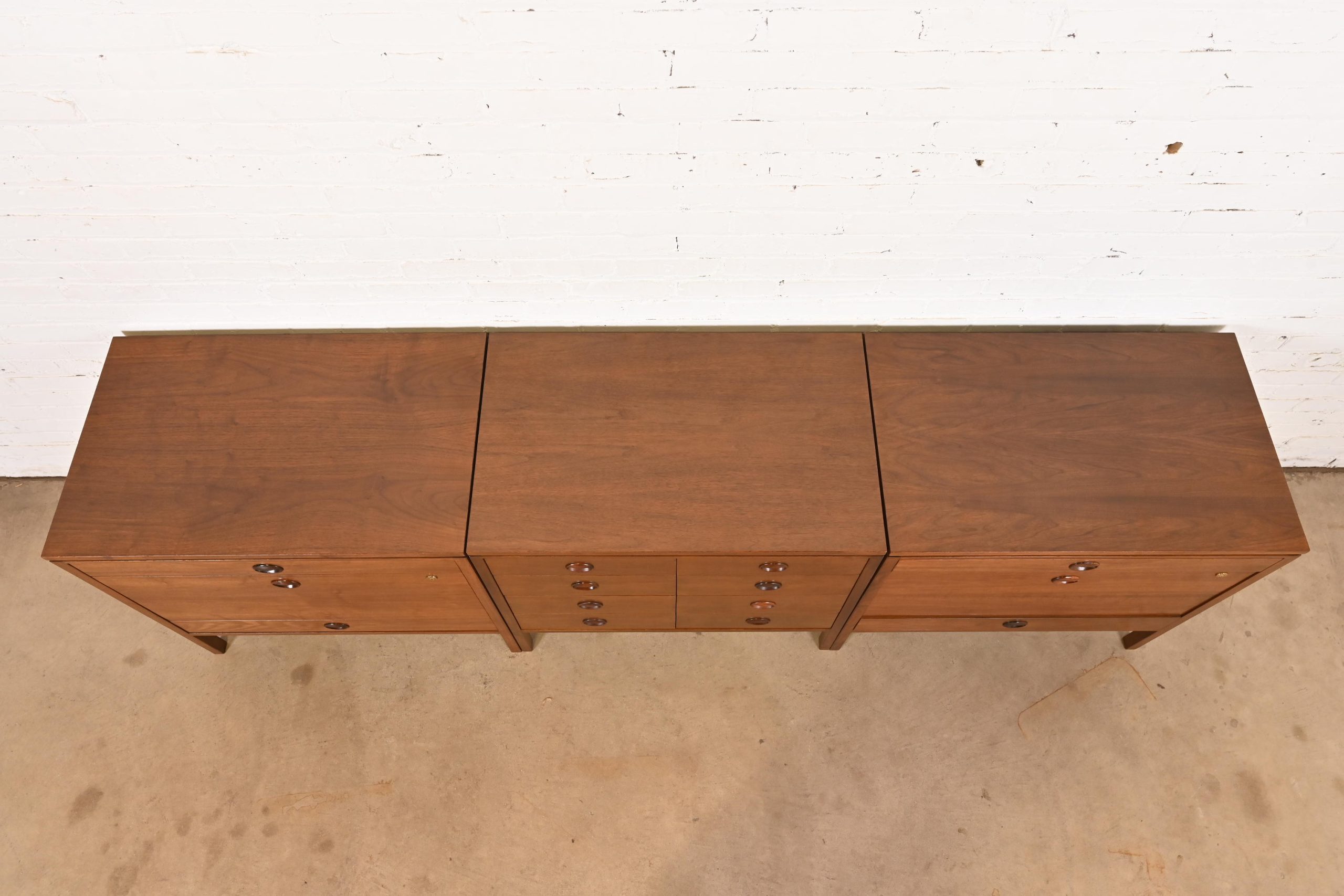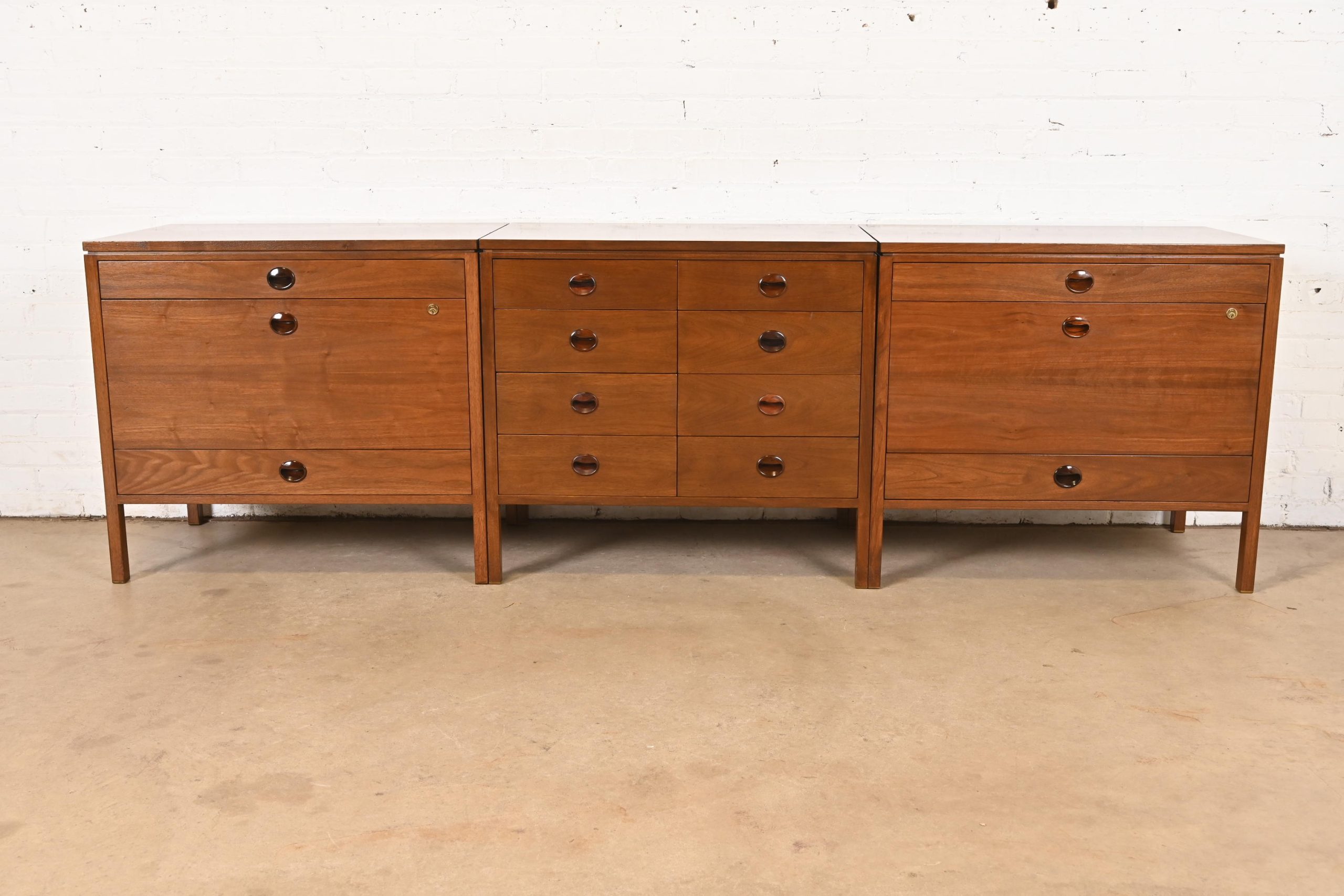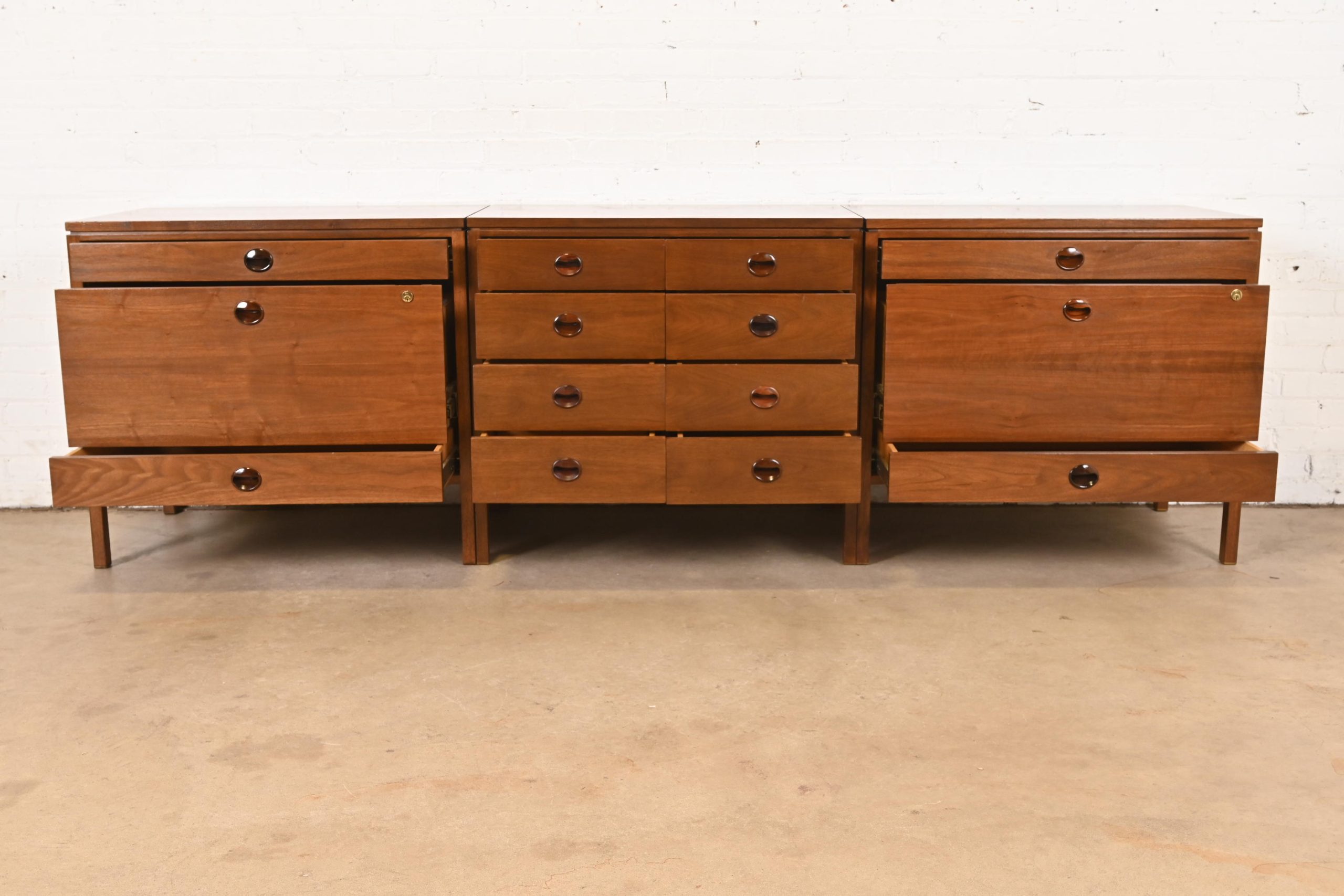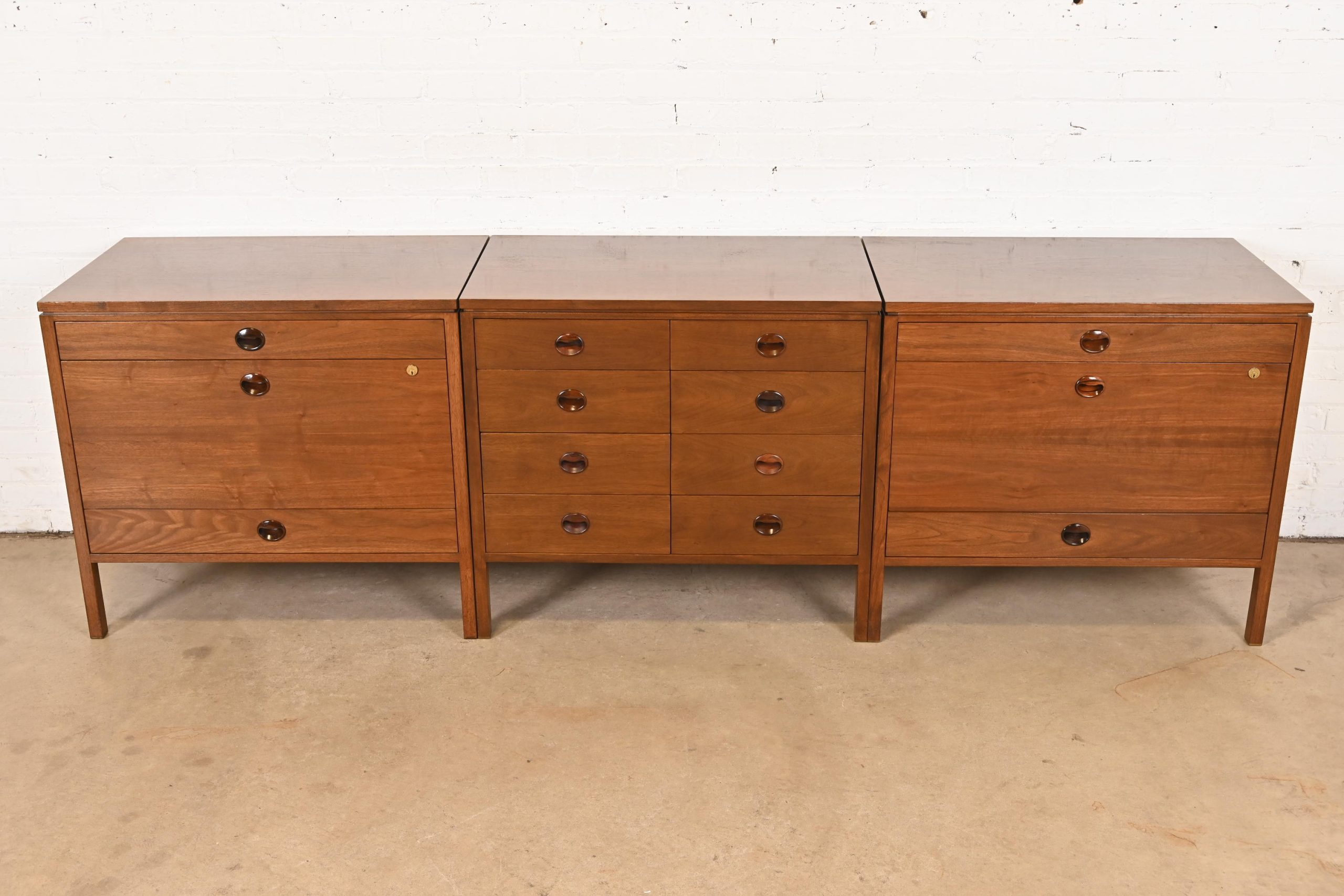 Edward Wormley for Dunbar Mid-Century Modern Walnut and Rosewood Three-Piece Executive Credenza, Circa 1960s