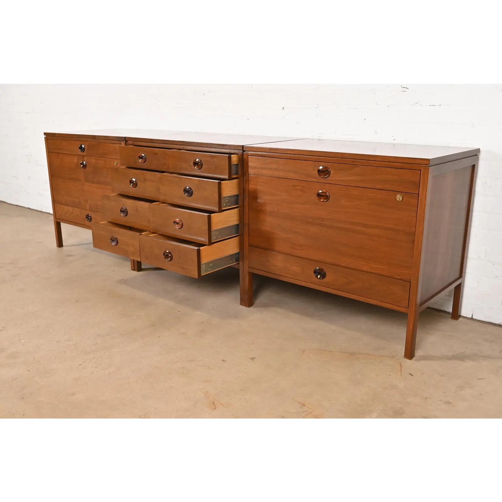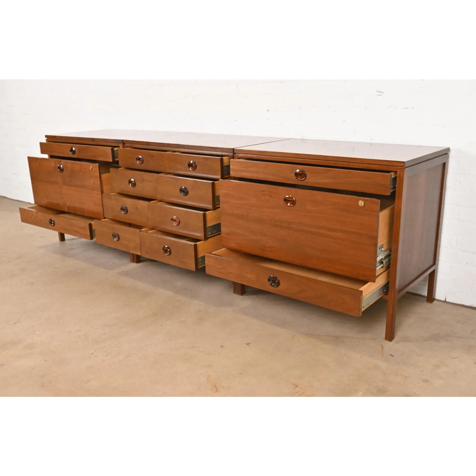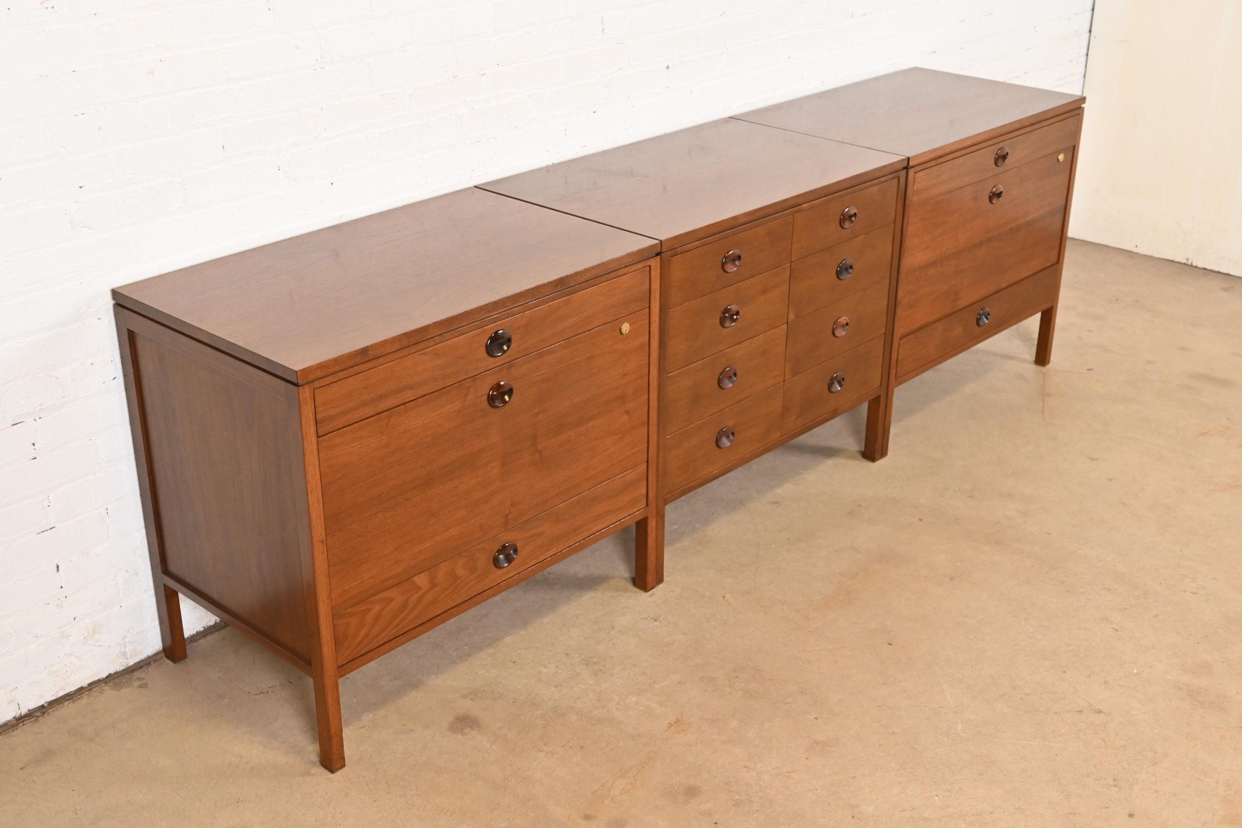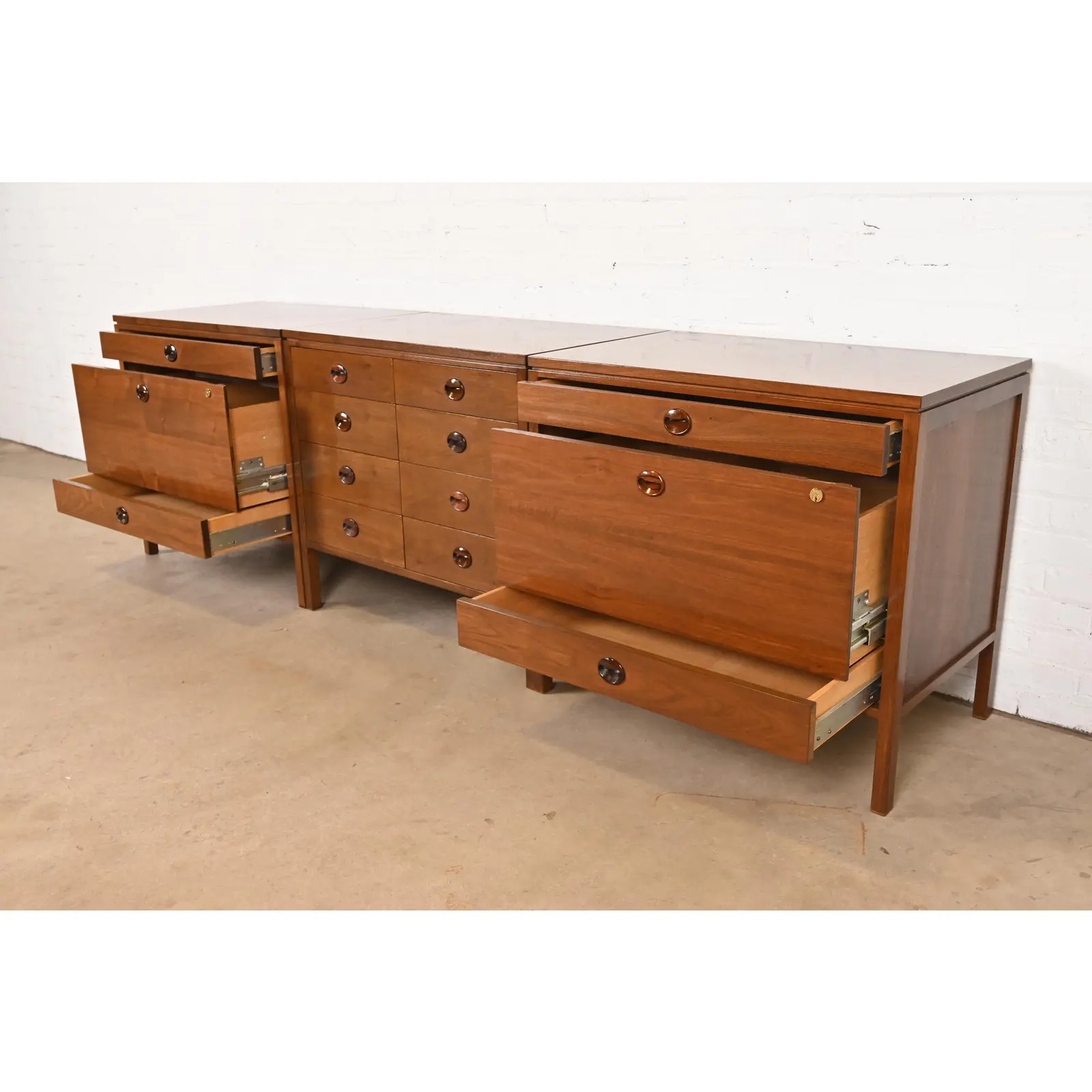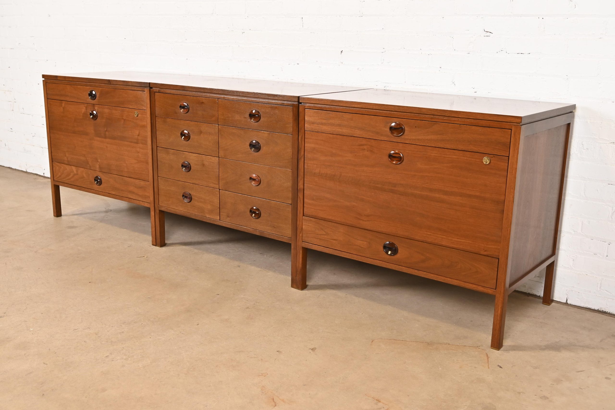 Edward Wormley for Dunbar Mid-Century Modern Walnut and Rosewood Three-Piece Executive Credenza, Circa 1960s