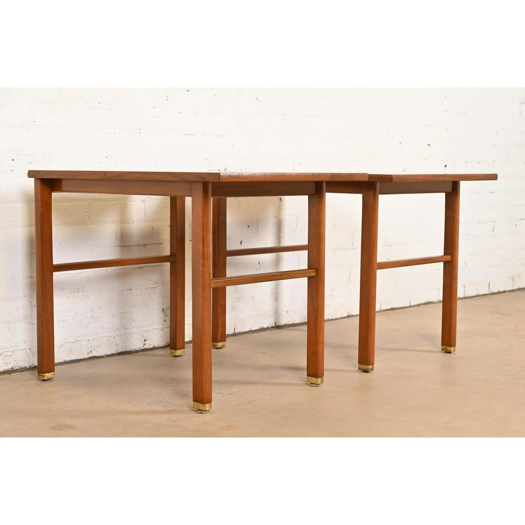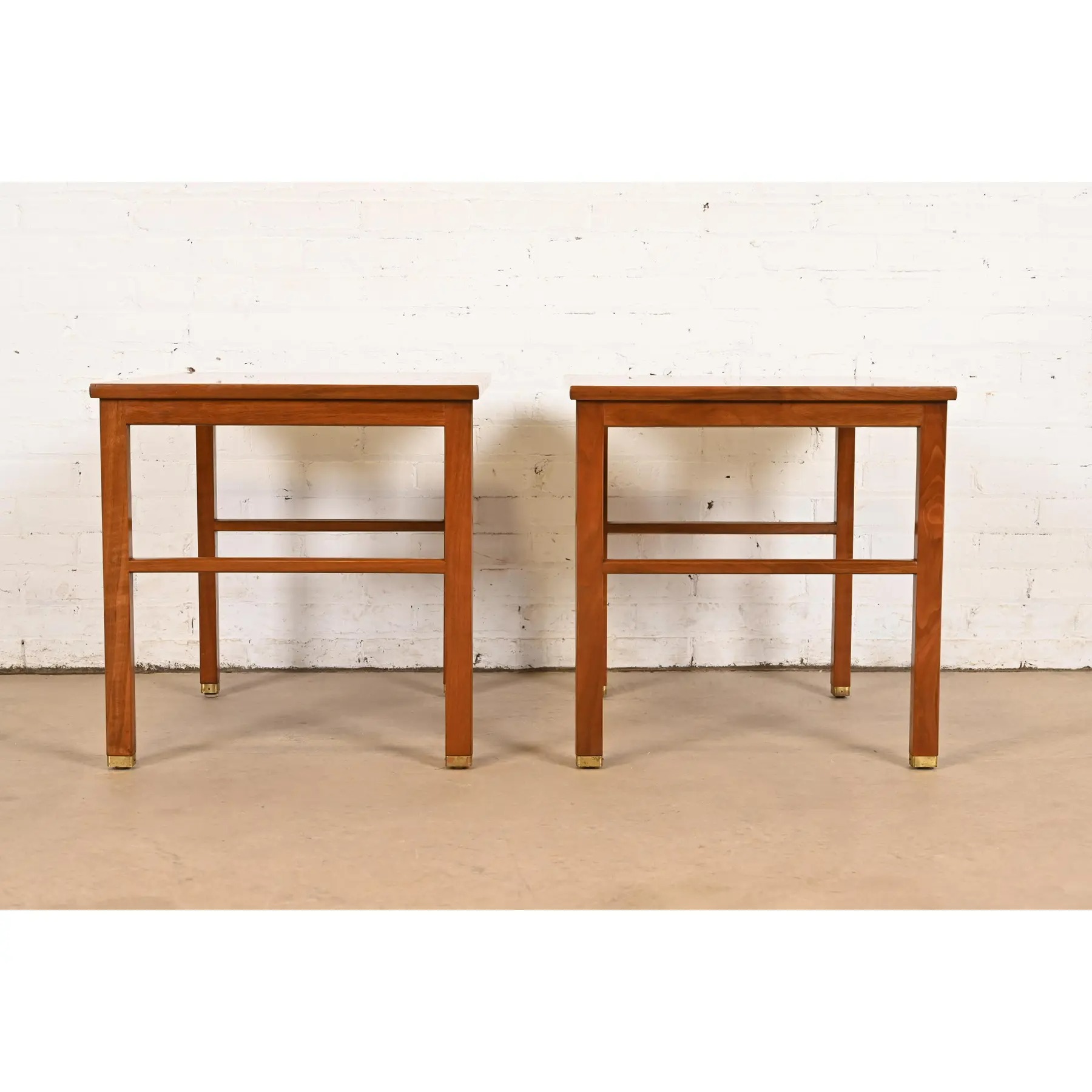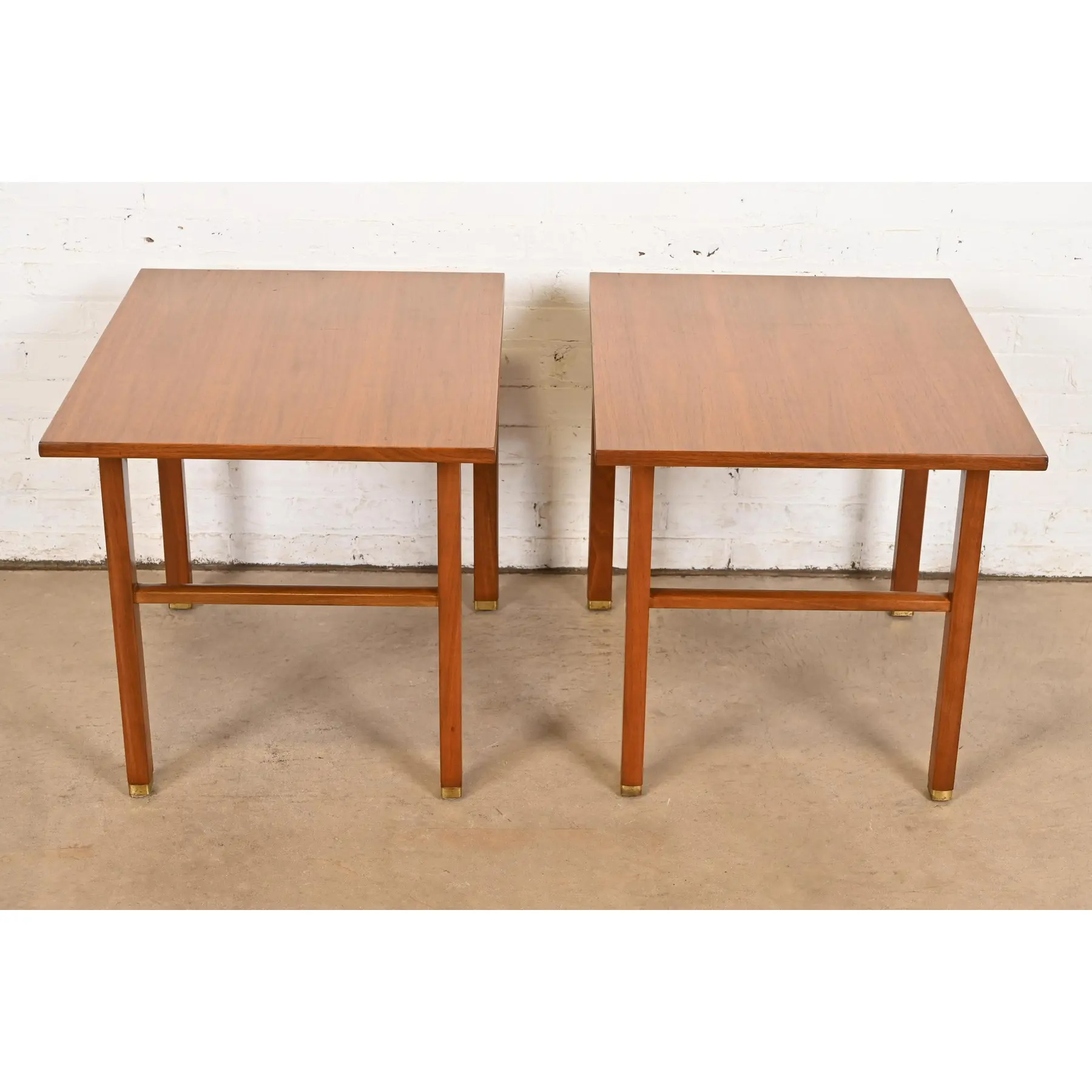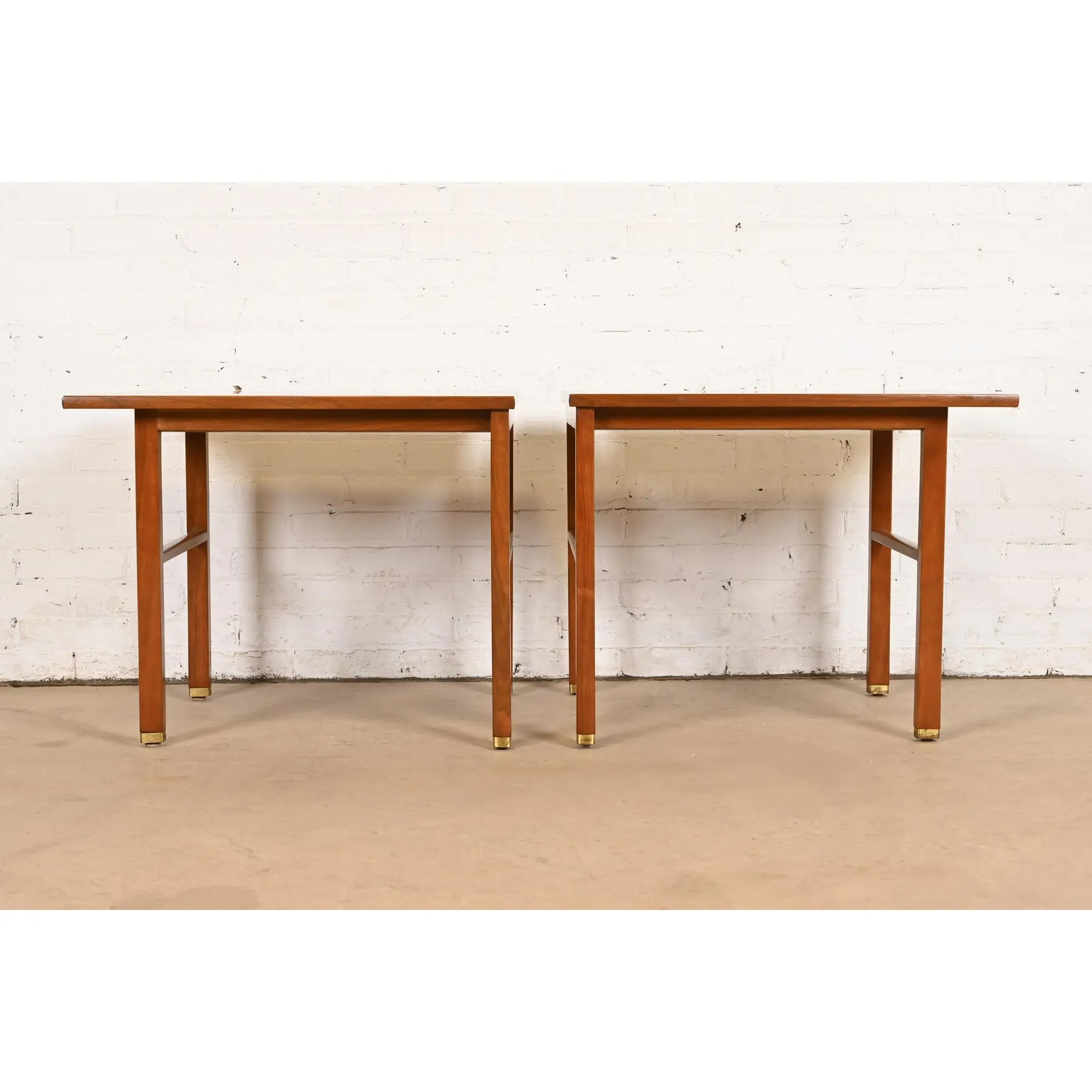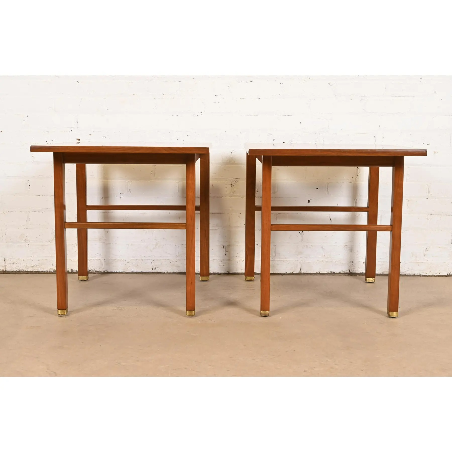 Edward Wormley for Dunbar Walnut and Brass Nightstands or End Tables, Pair