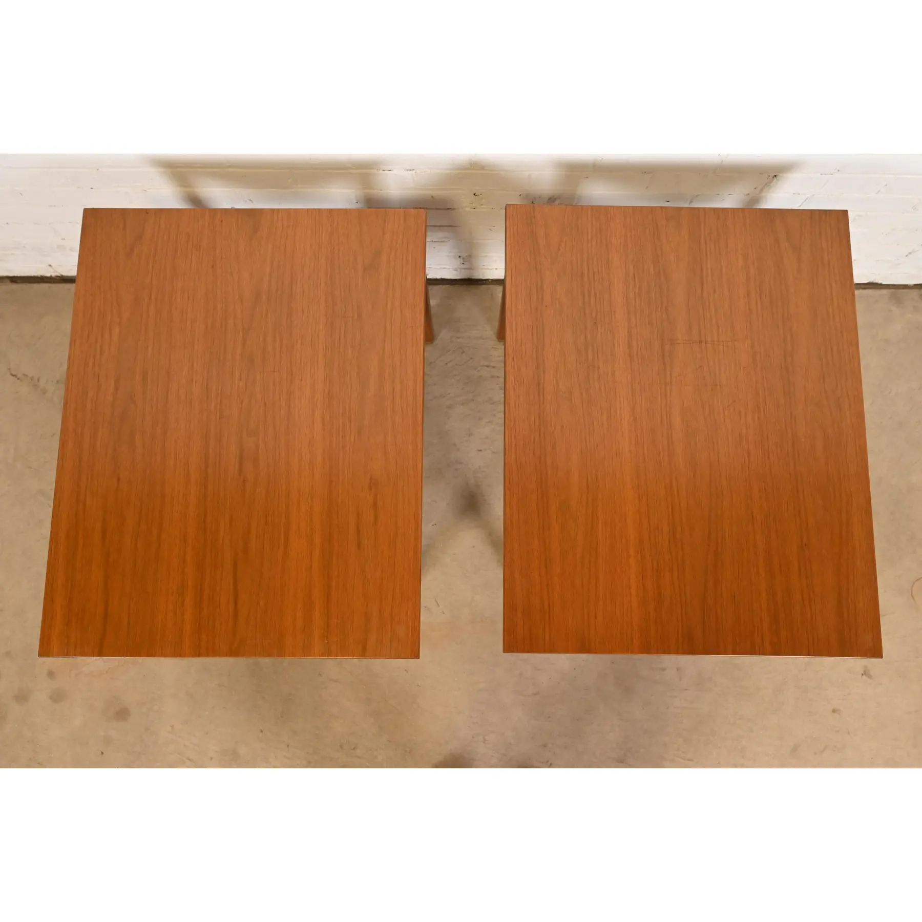 An exceptional pair of Mid-Century Modern side tables or nightstands