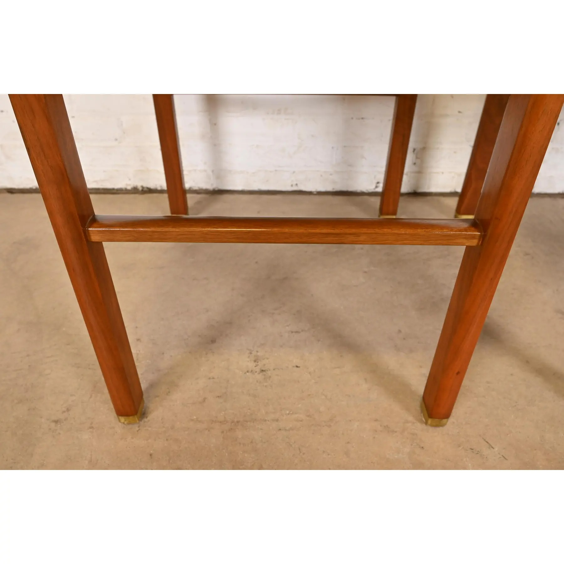 Walnut, with brass-capped feet.