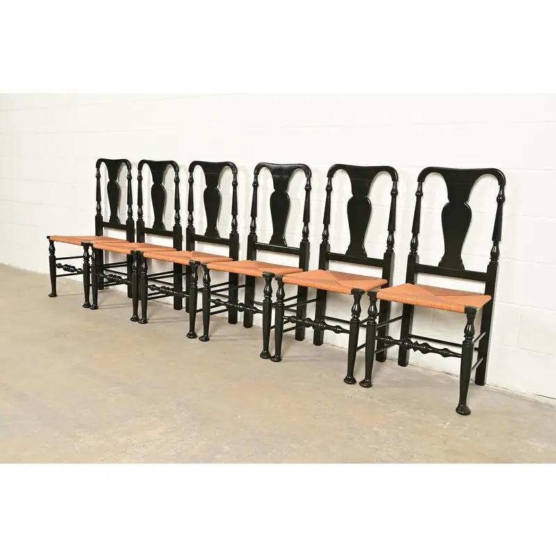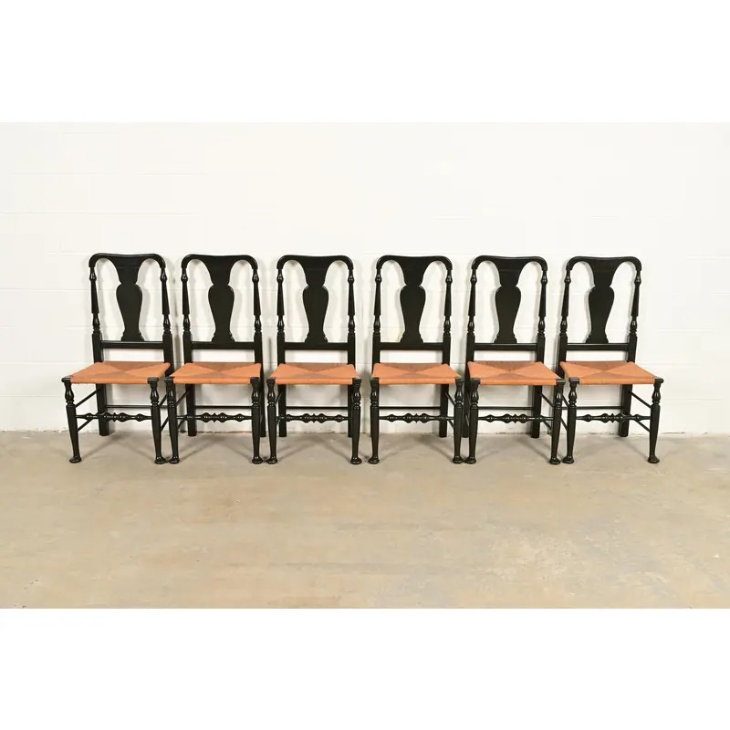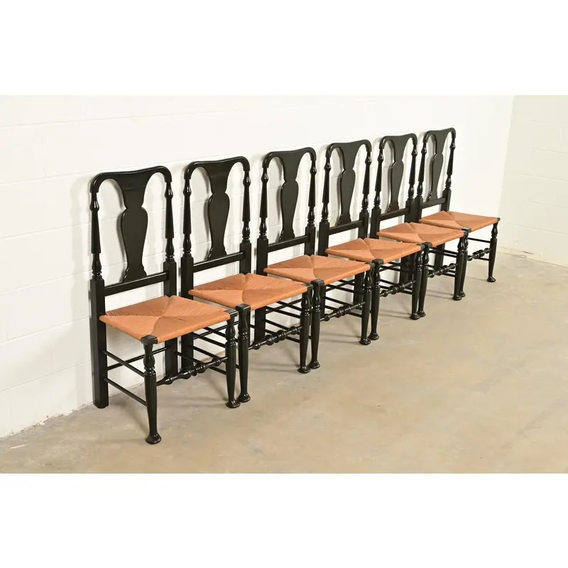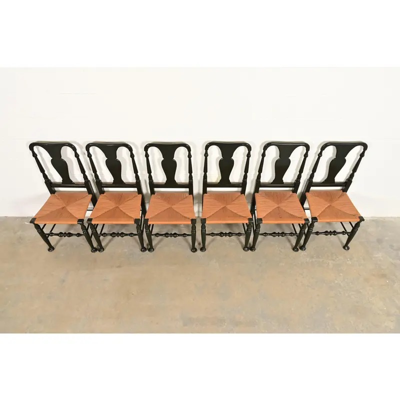 An outstanding set of six Early American or Queen Anne style dining chairs