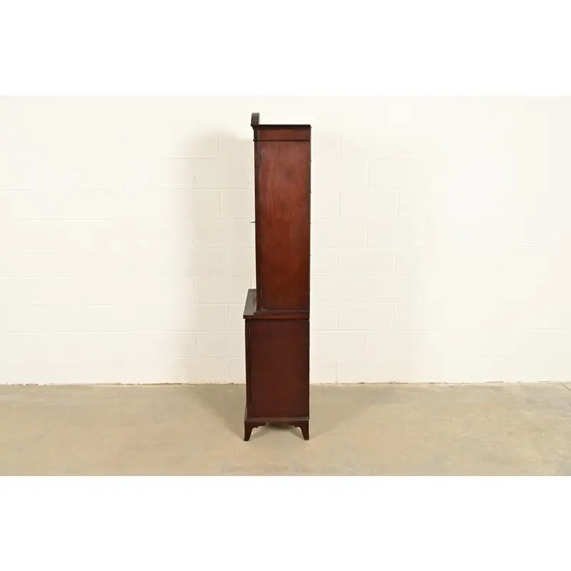 A gorgeous antique English Regency, Sheraton, or Hepplewhite style breakfront bookcase or dining cabinet
