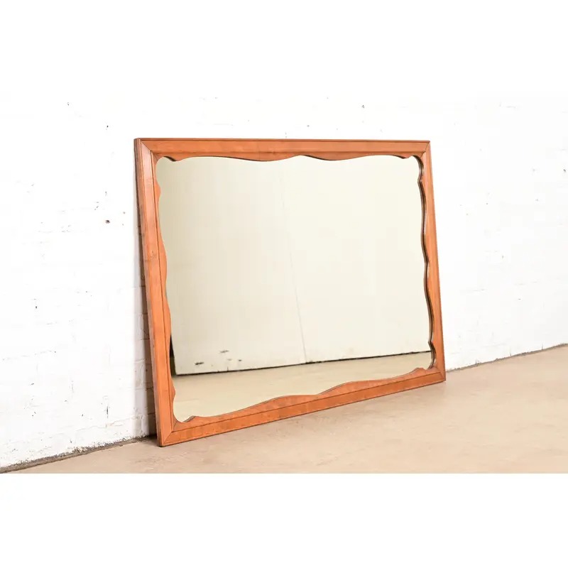 A gorgeous American Colonial or Early American style carved solid maple framed wall mirror