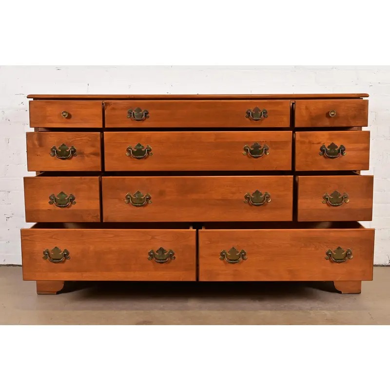 A gorgeous American Colonial, Georgian, or Chippendale style eleven-drawer dresser, credenza, or chest of drawers