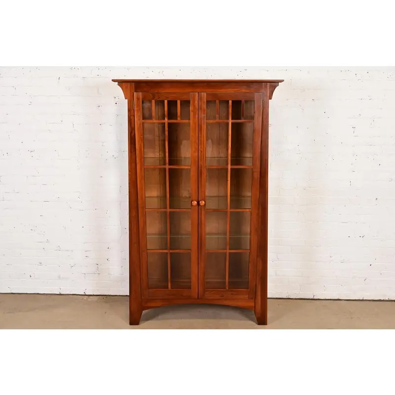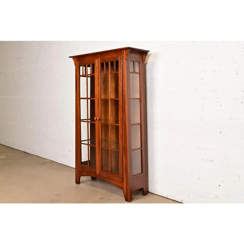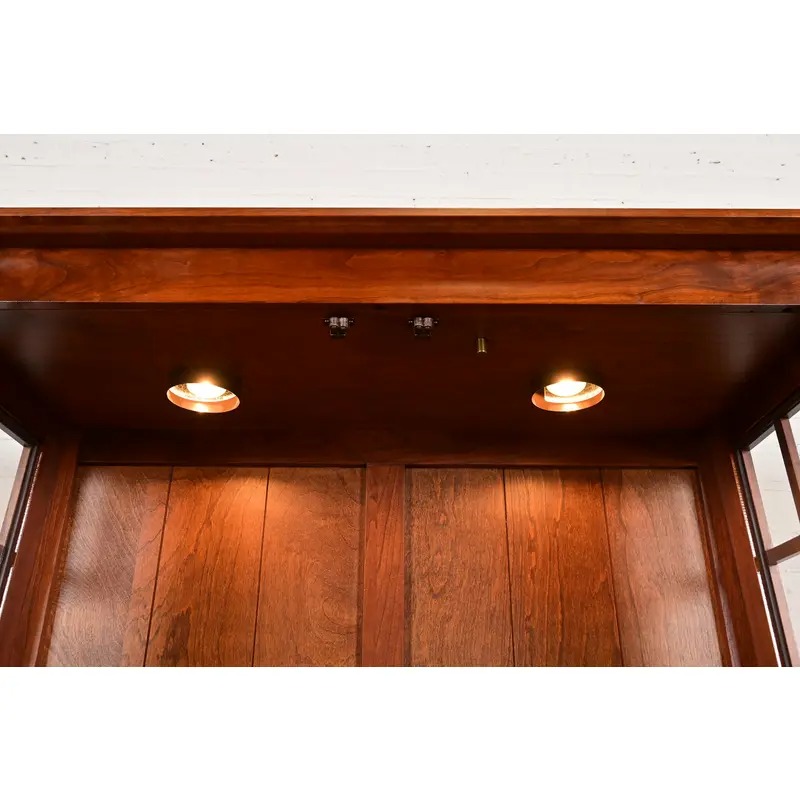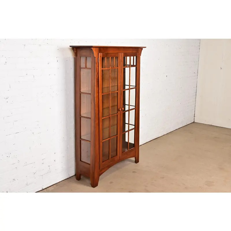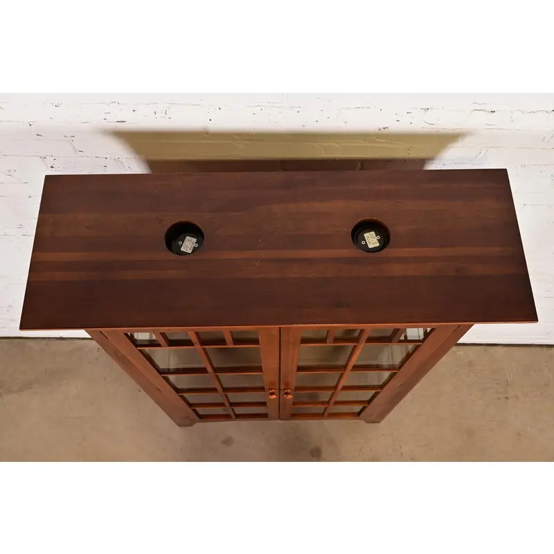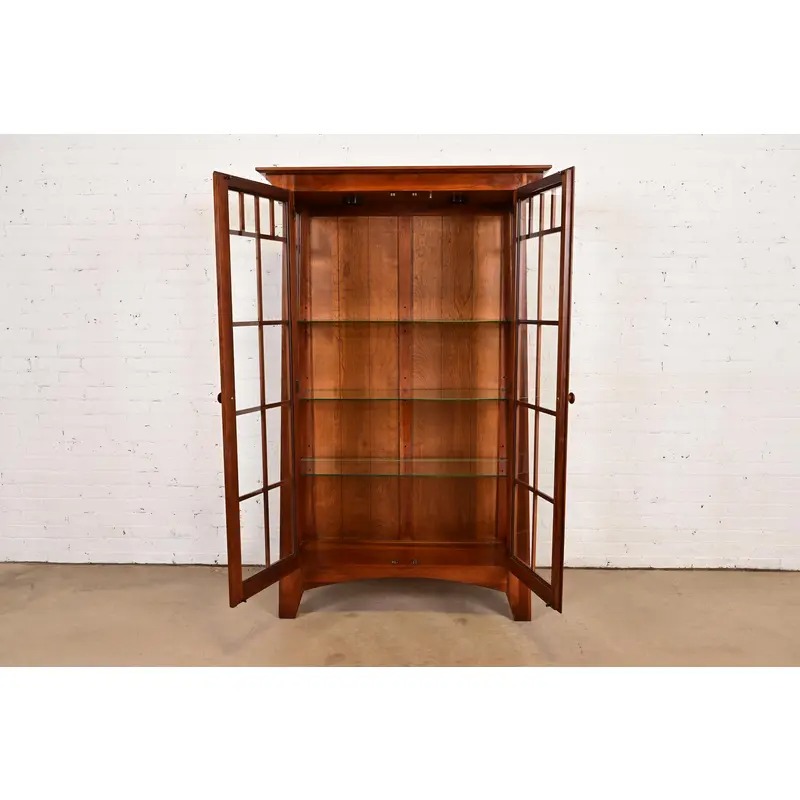 Ethan Allen Arts & Crafts Solid Cherry Wood Lighted Bookcase or Display Cabinet