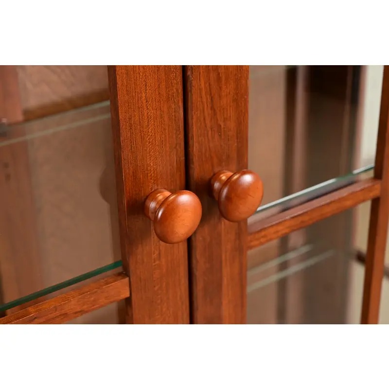 Solid cherry wood, with mullioned glass front and sides. Interior shelves are adjustable.