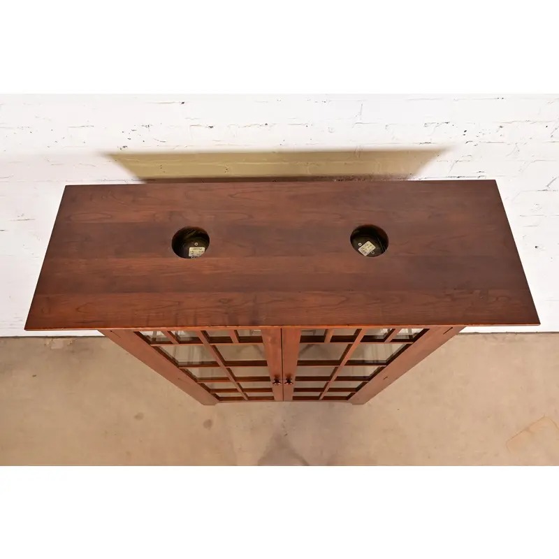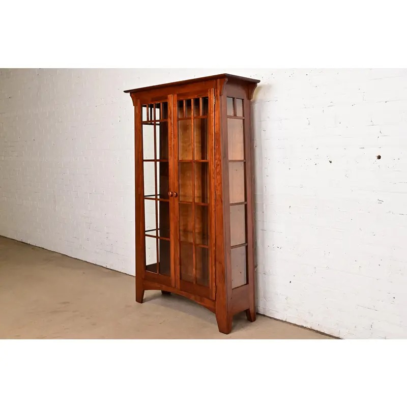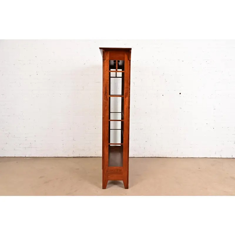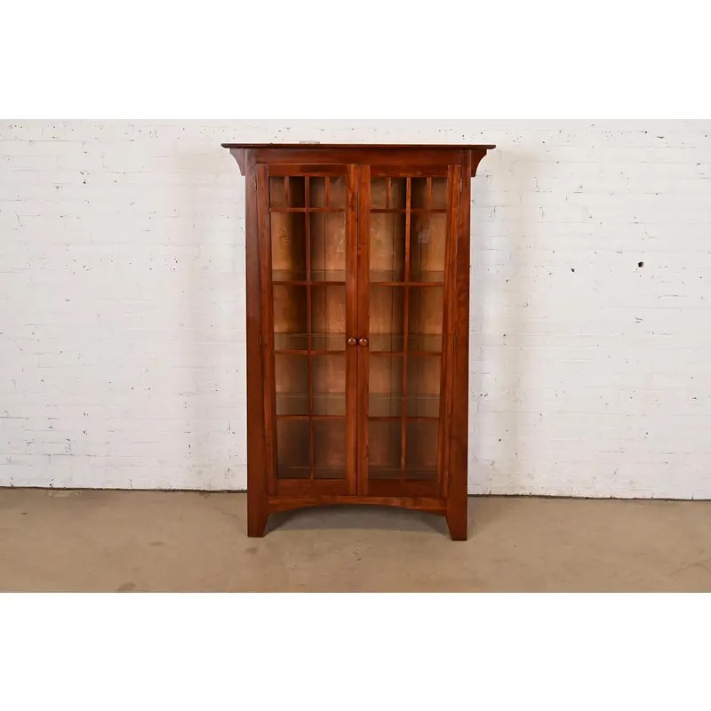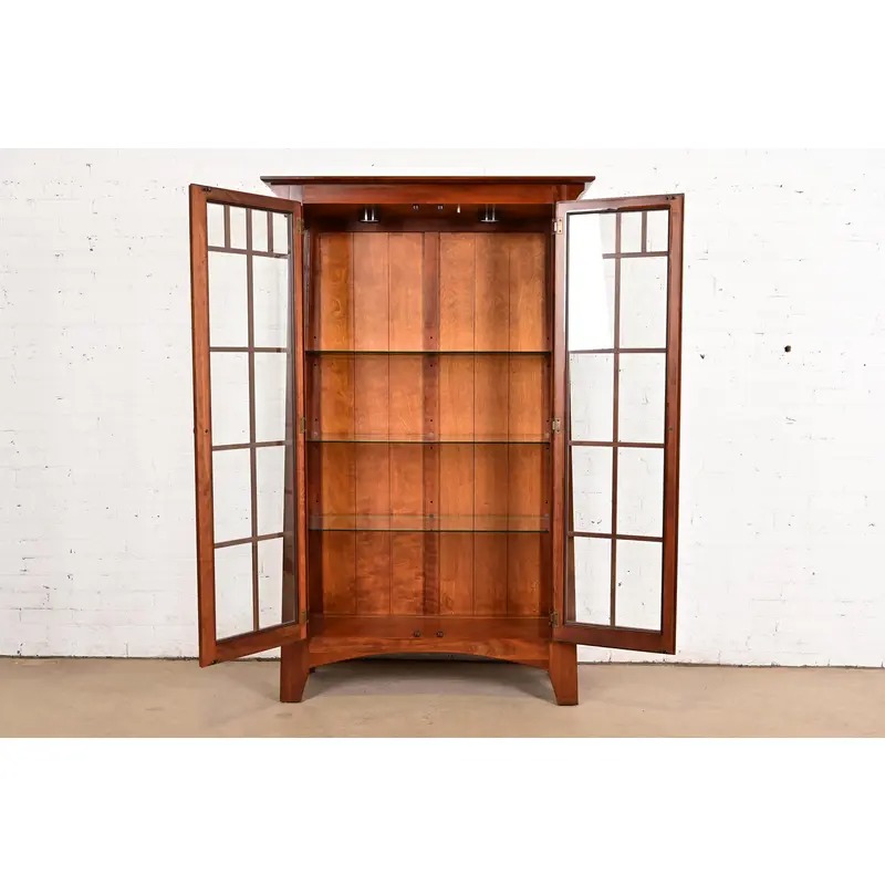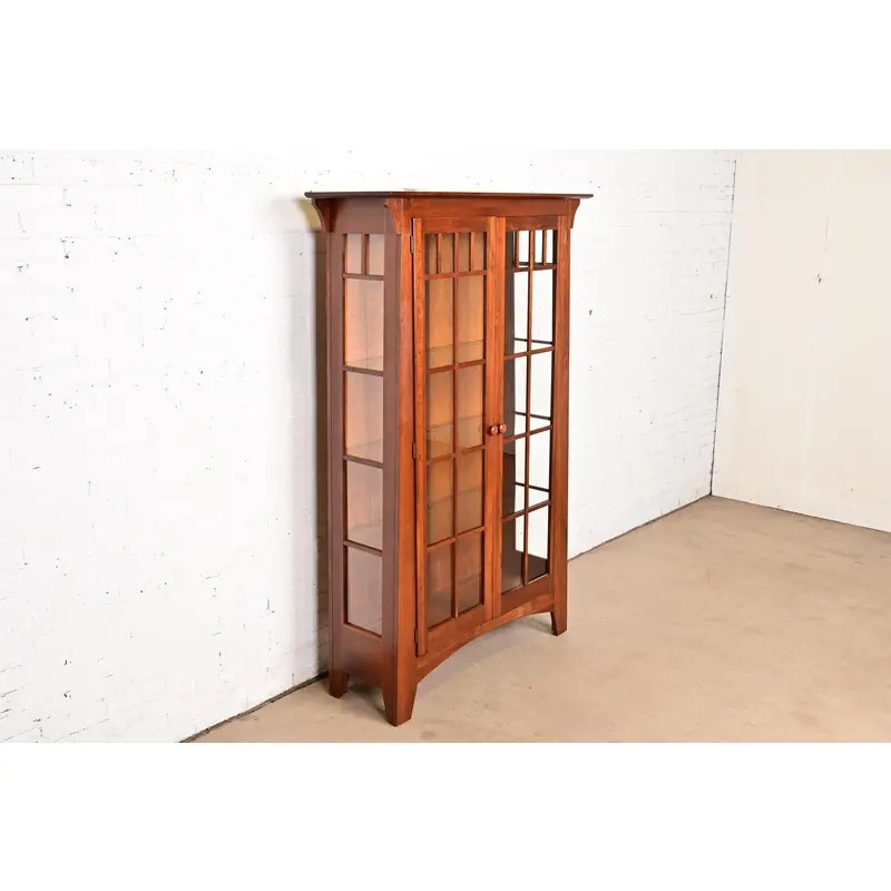 A gorgeous Mission or Arts & Crafts style lighted display cabinet or bookcase