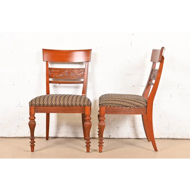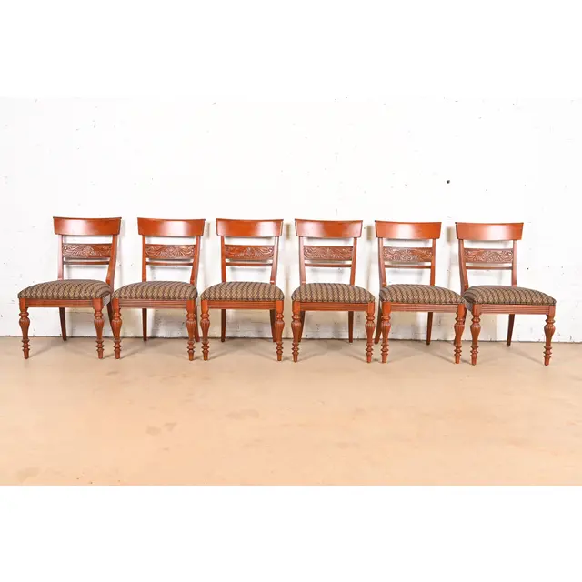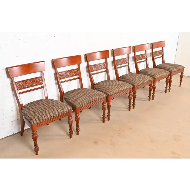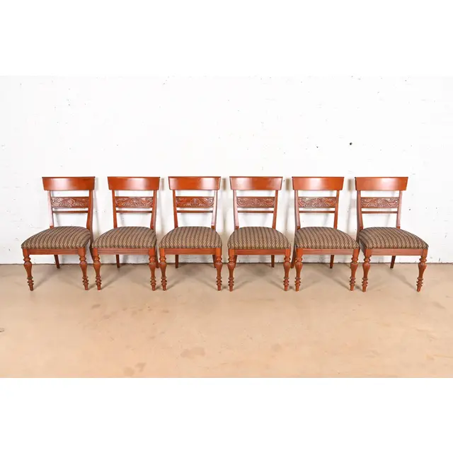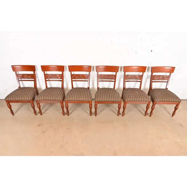 Ethan Allen British Colonial Solid Cherry Wood Dining Chairs, Set of Six