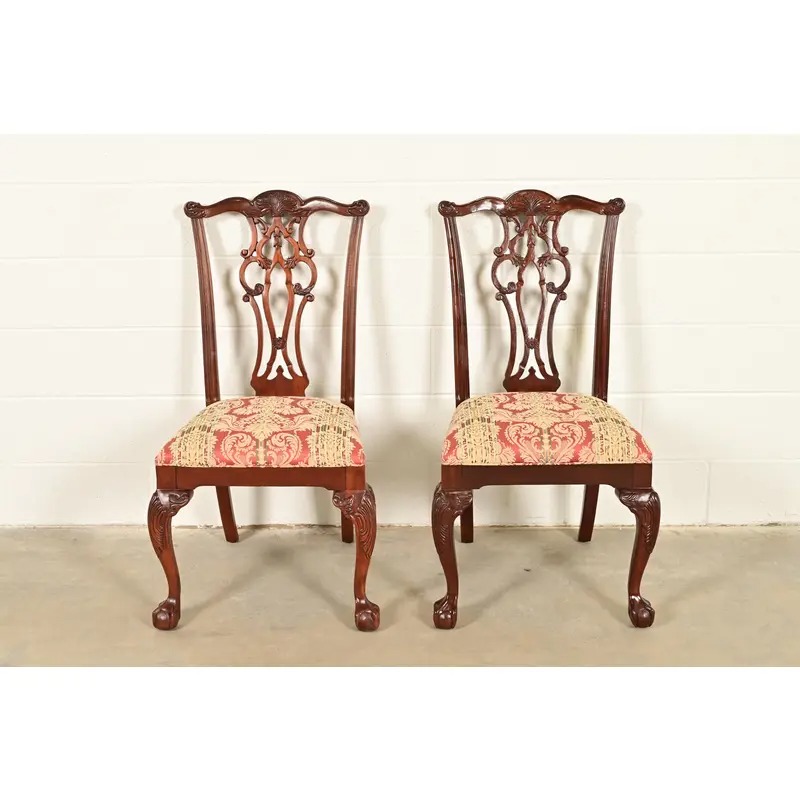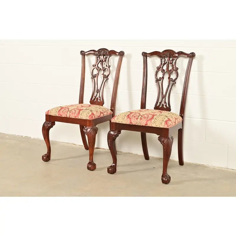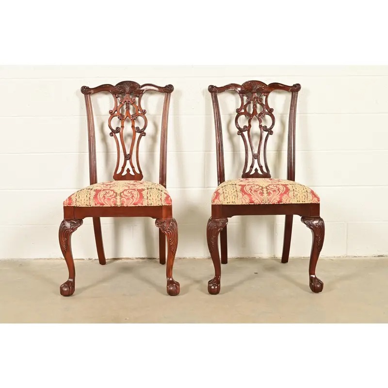 A gorgeous pair of Georgian or Chippendale style side chairs or dining chairs