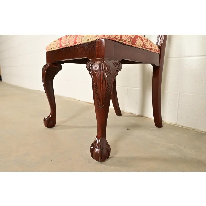 Carved solid mahogany, with ball and claw feet, and upholstered seats.