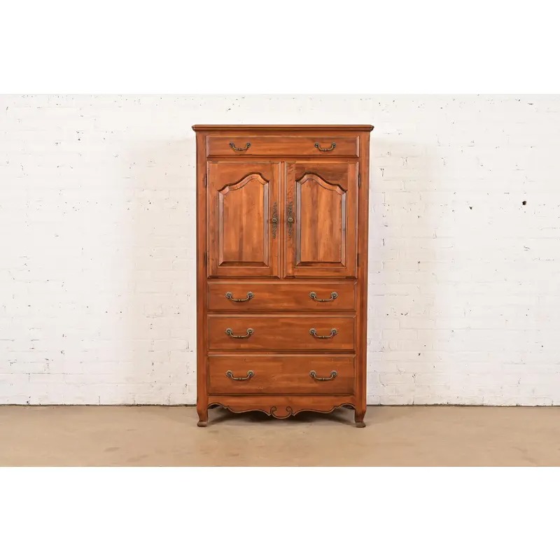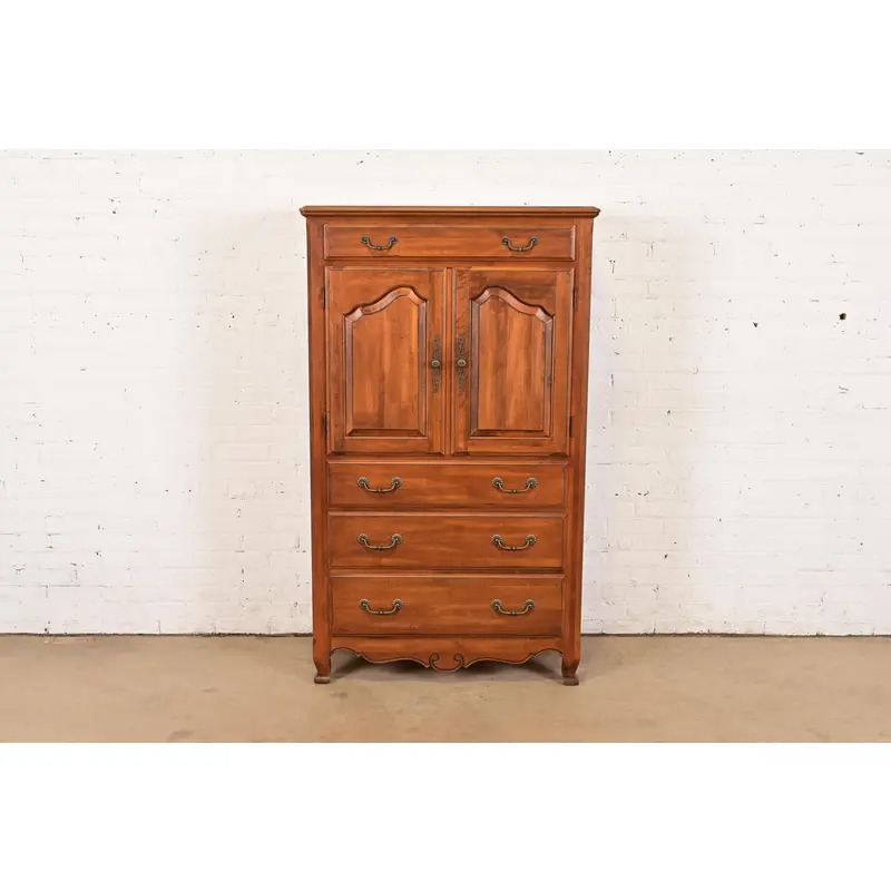 A gorgeous French Provincial Louis XV or County French style highboy dresser, gentleman’s chest, or linen press