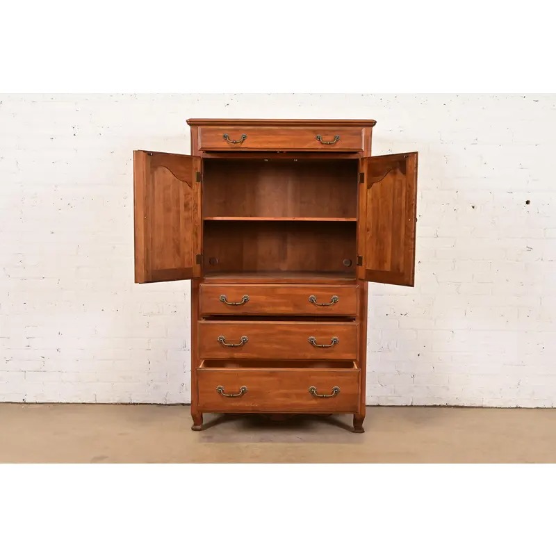 Ethan Allen Country French Carved Solid Maple Highboy Dresser or Chest of Drawers