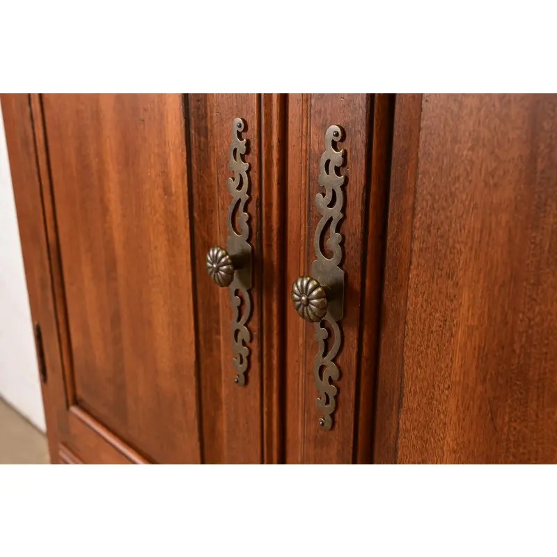 Carved solid maple, with original brass hardware. Interior shelf is adjustable.
