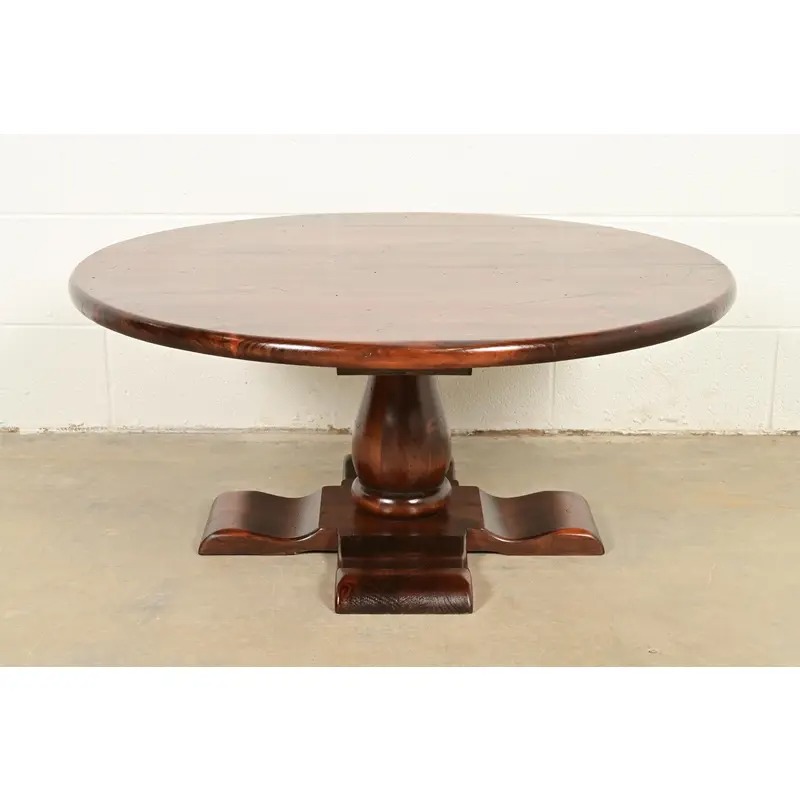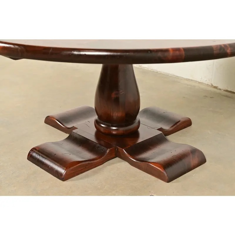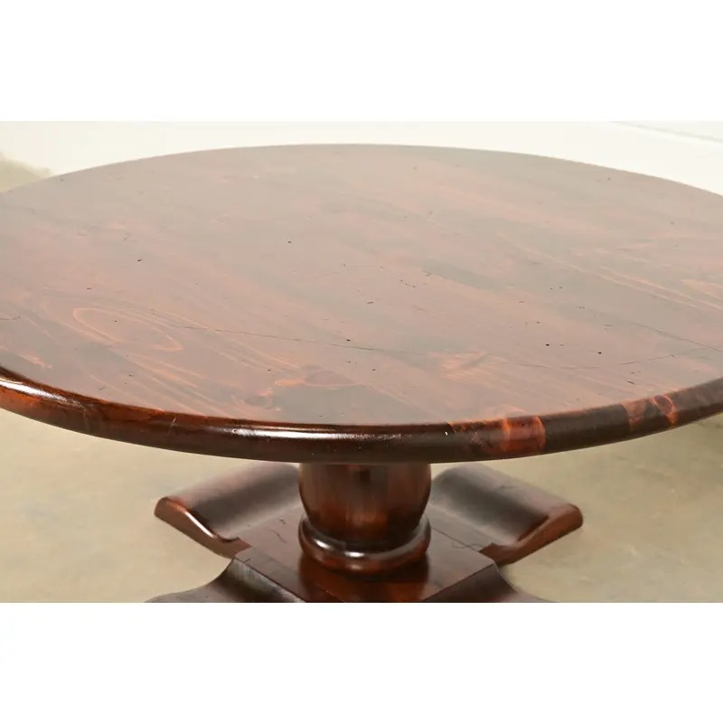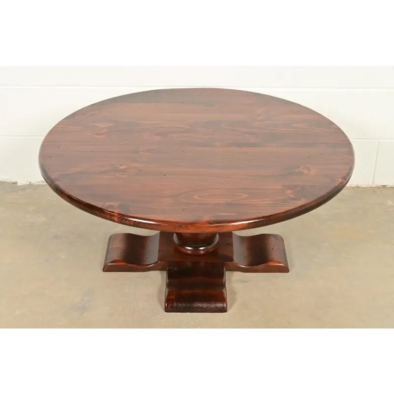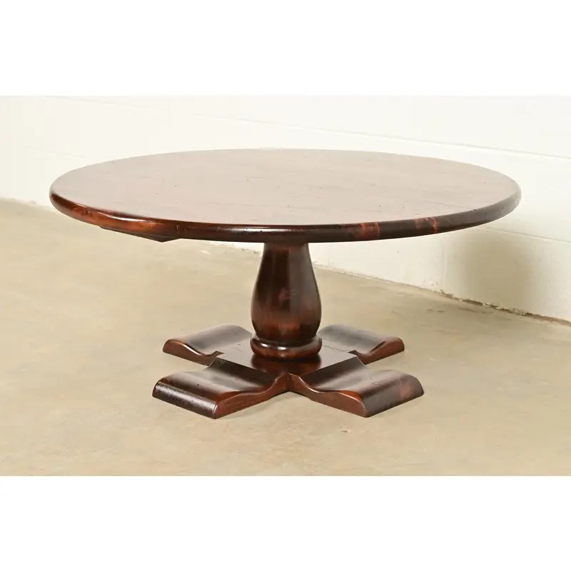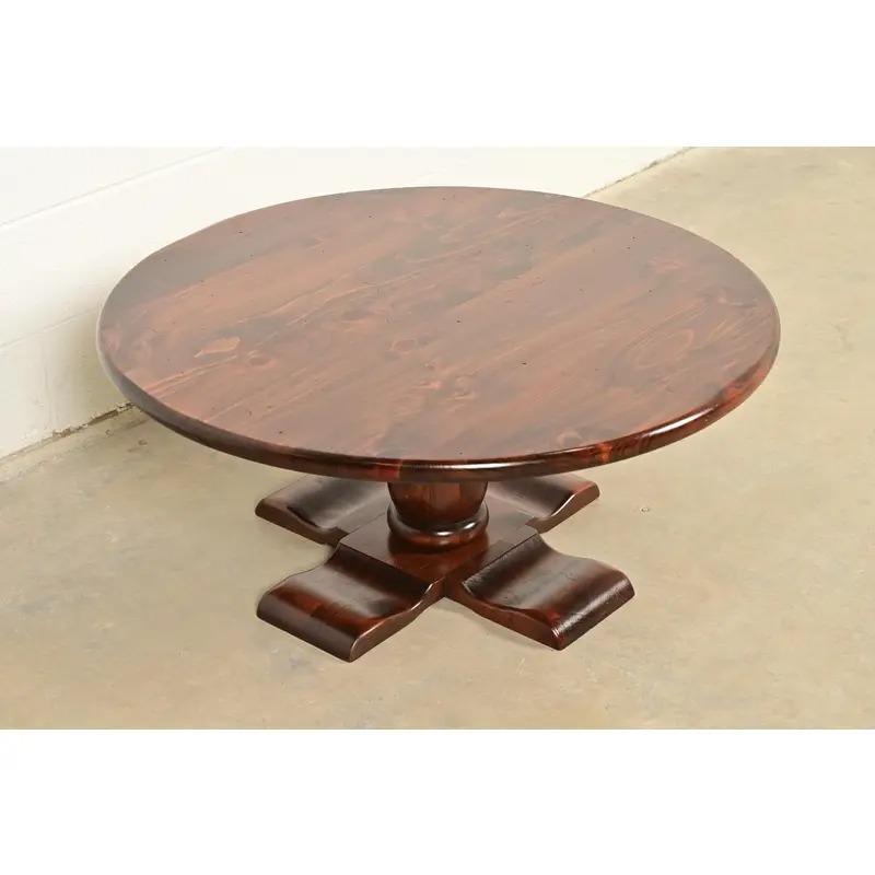 A gorgeous Early American or Rustic European style solid pine pedestal coffee table