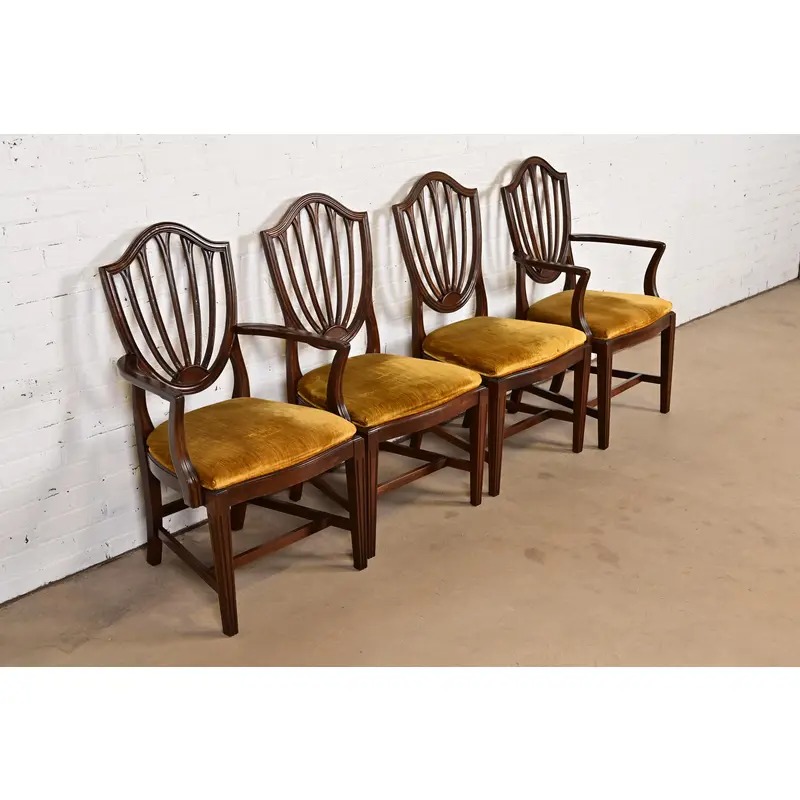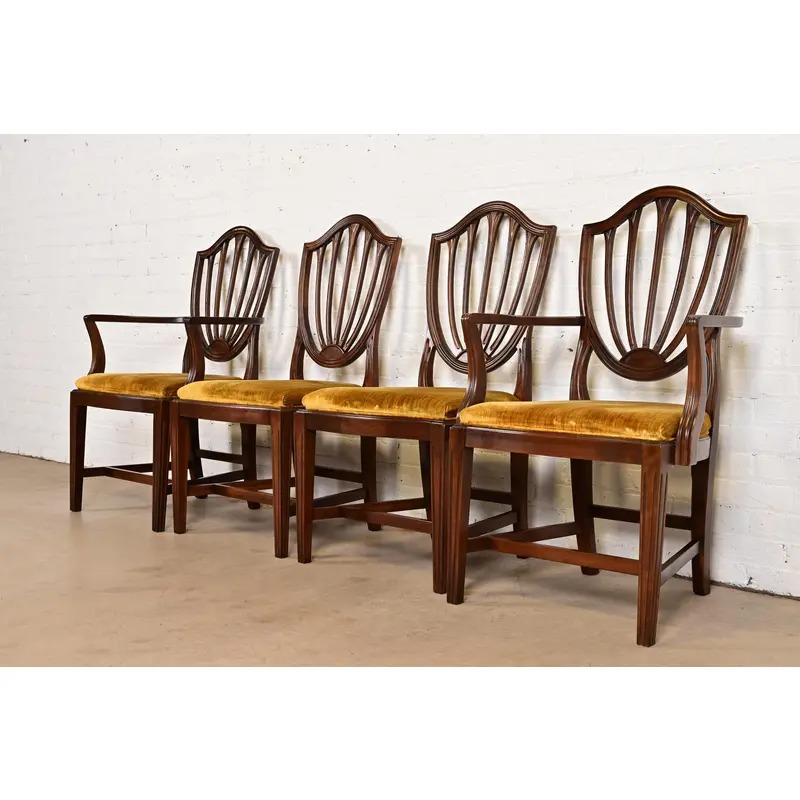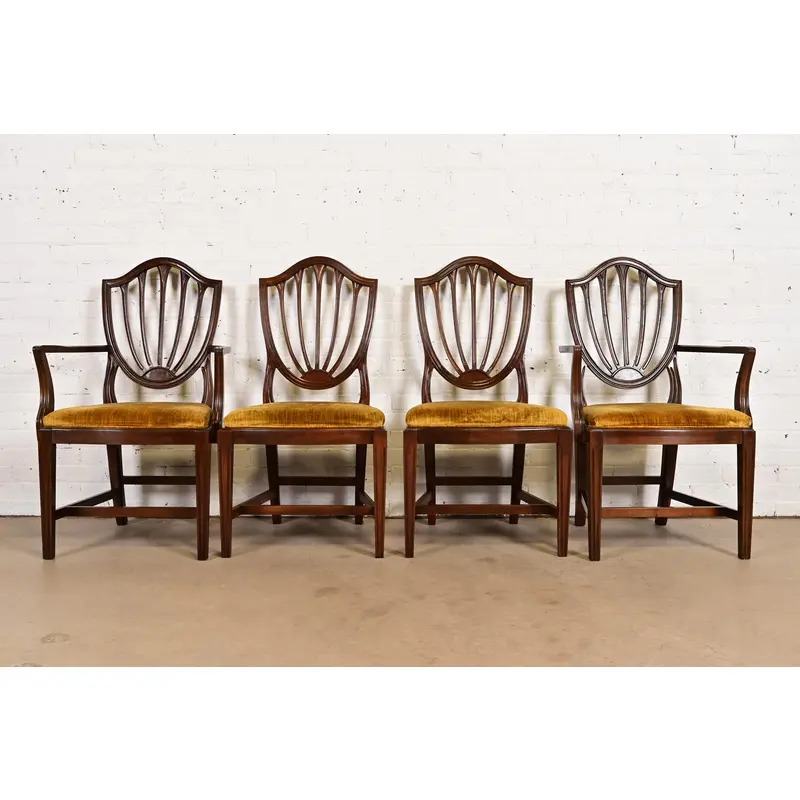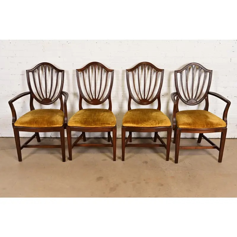 A gorgeous set of four Federal or Hepplewhite style shield back dining chairs