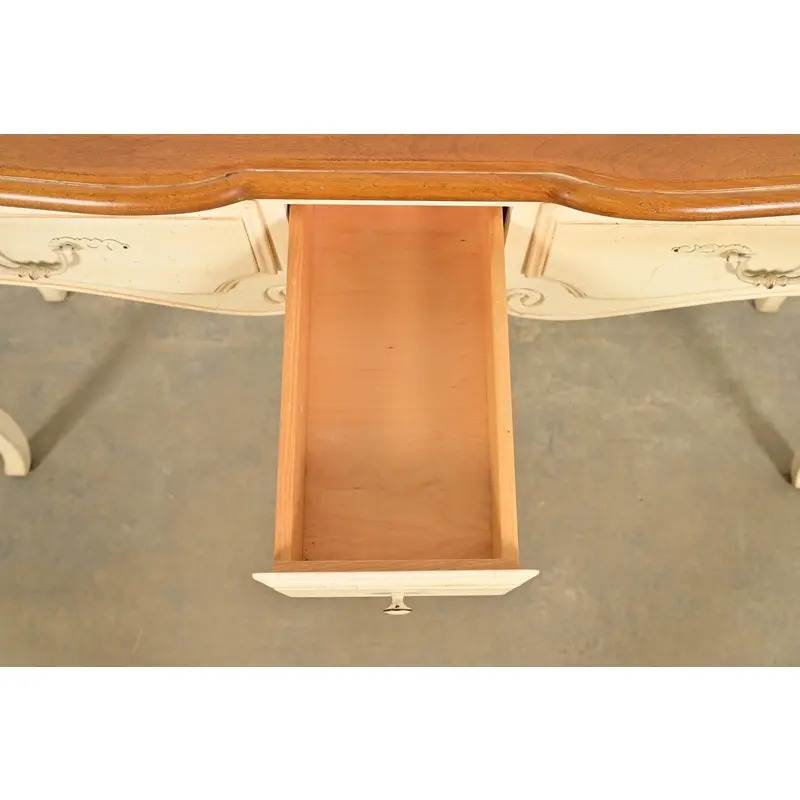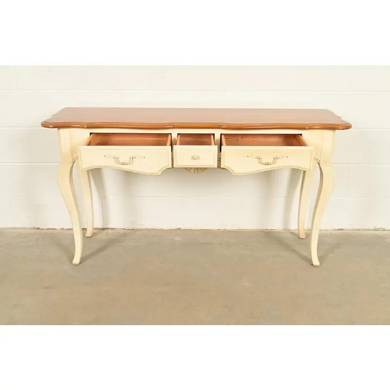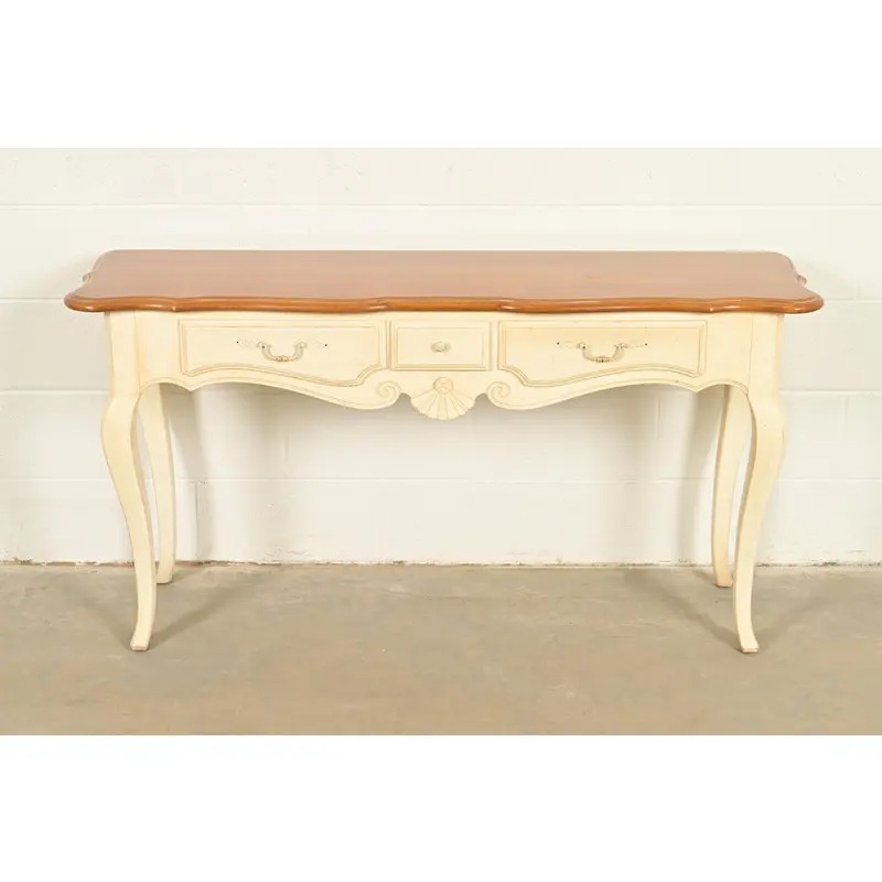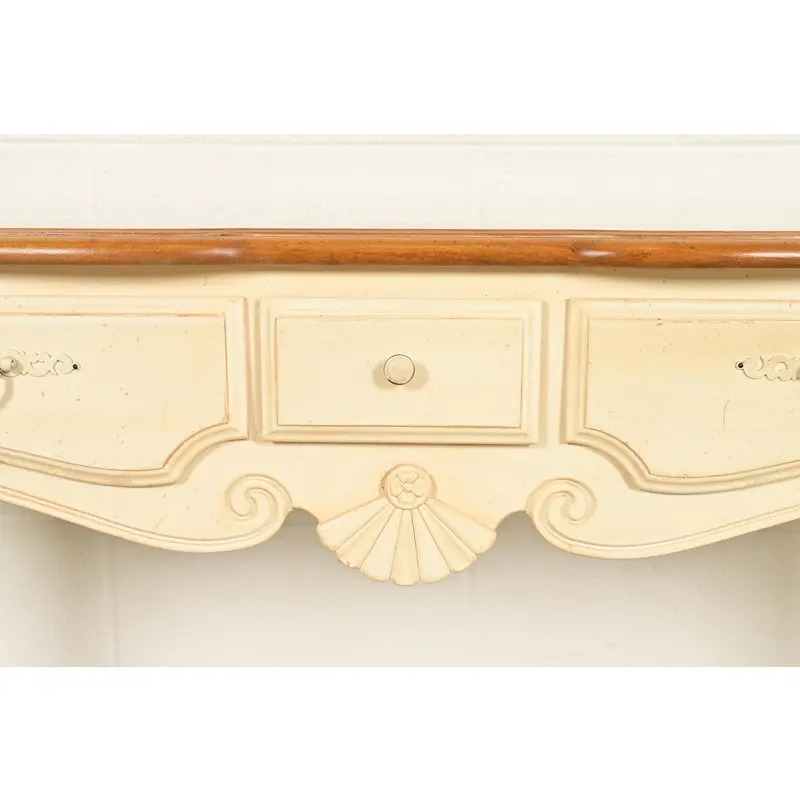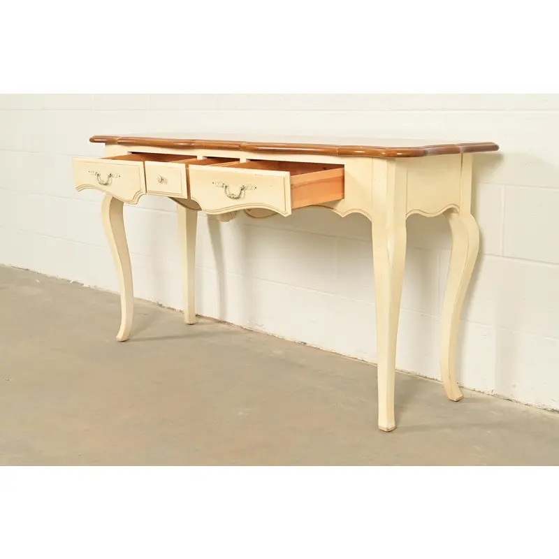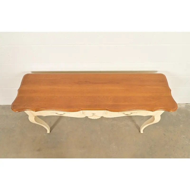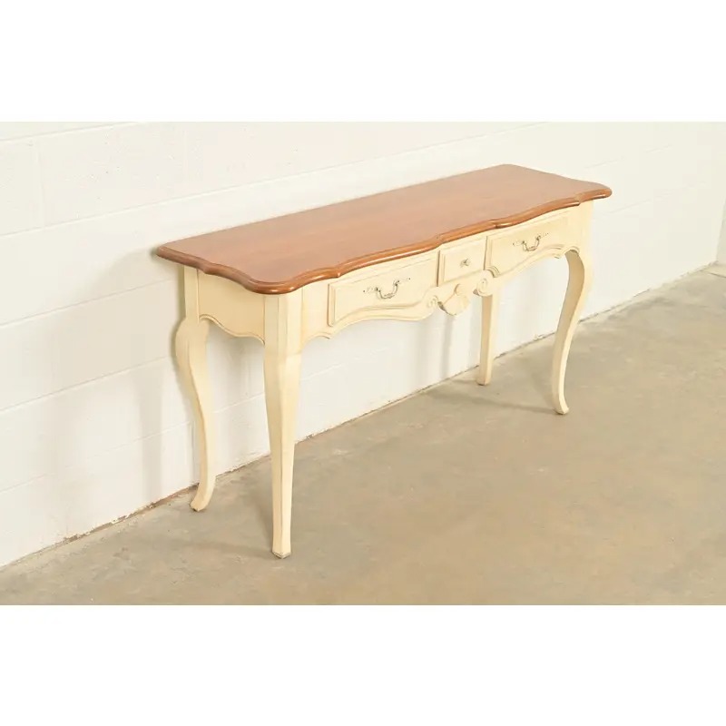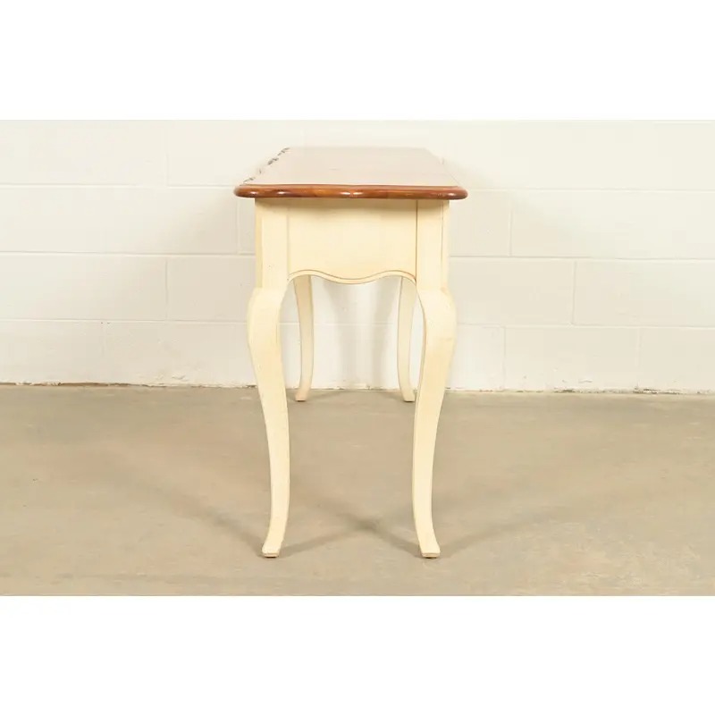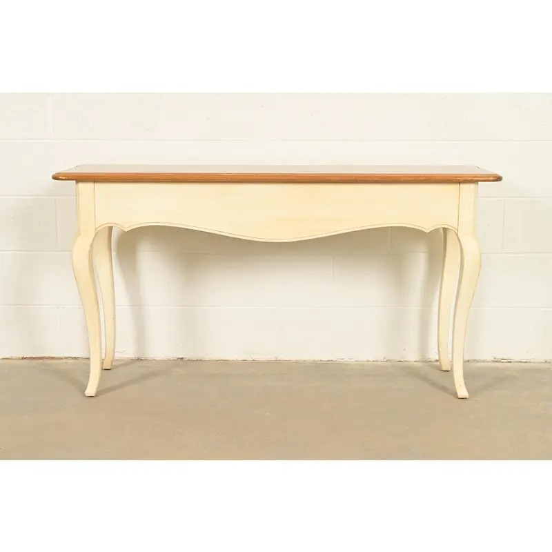 Ethan Allen French Country Cream Lacquered Maple Top Console Table