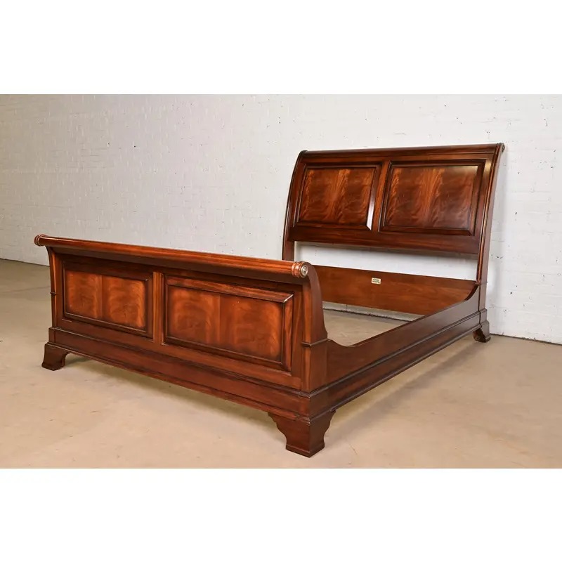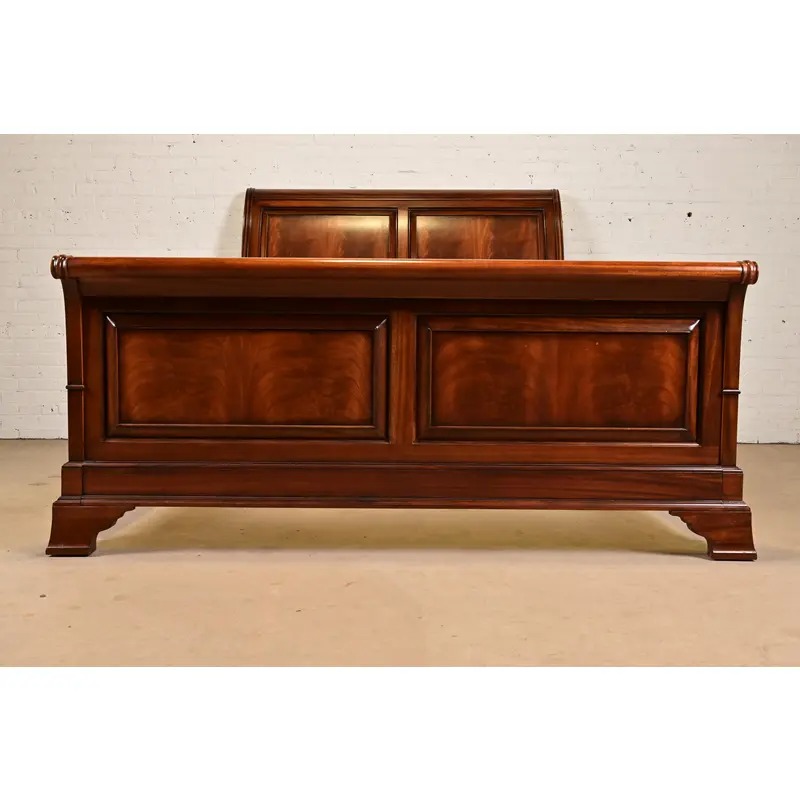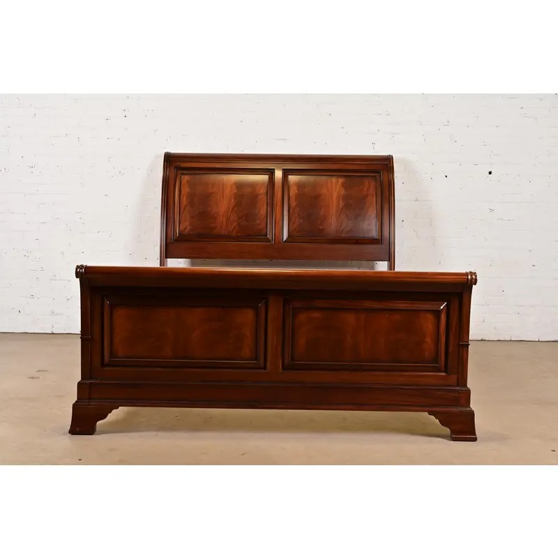 An outstanding French Empire or Louis Philippe style queen size sleigh bed