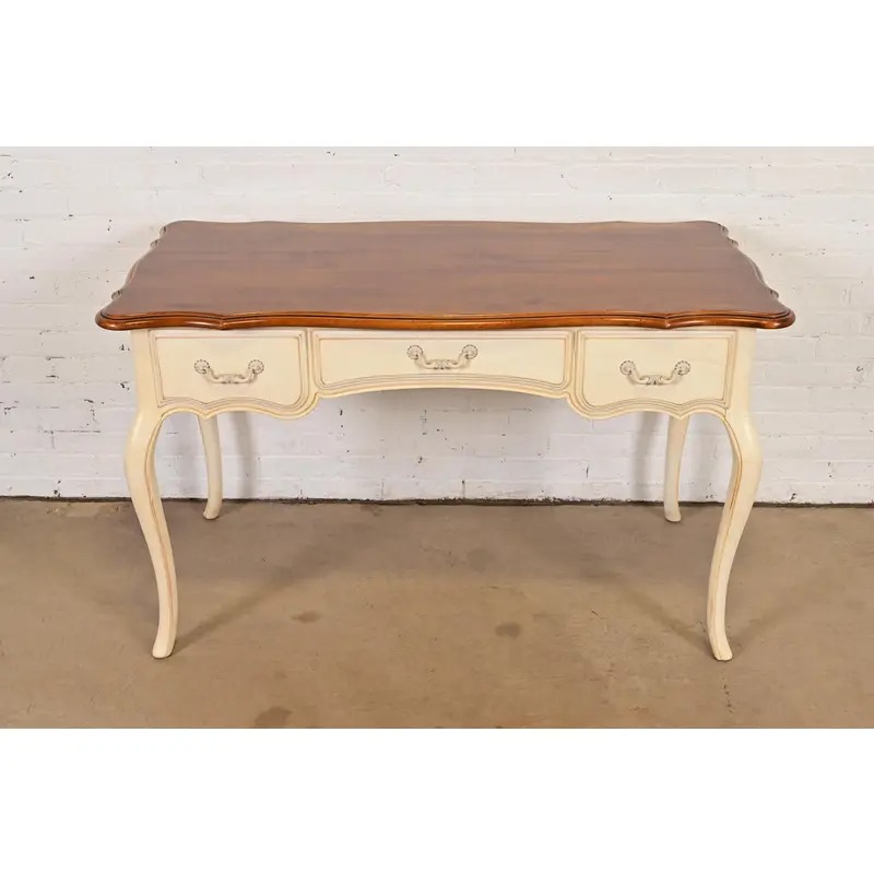 Ethan Allen French Provincial Louis XV Cream Lacquered Maple Top Writing Desk