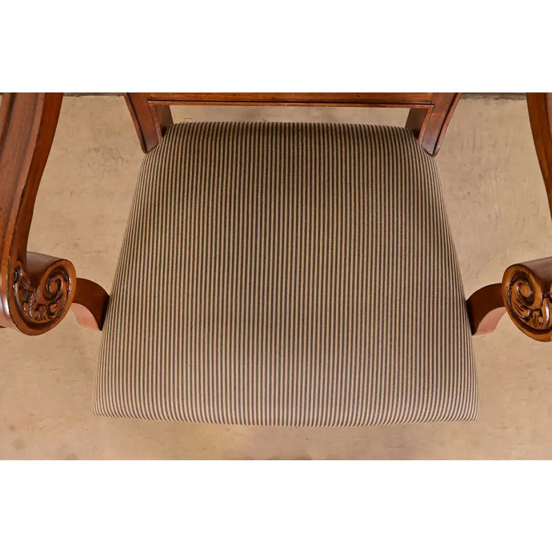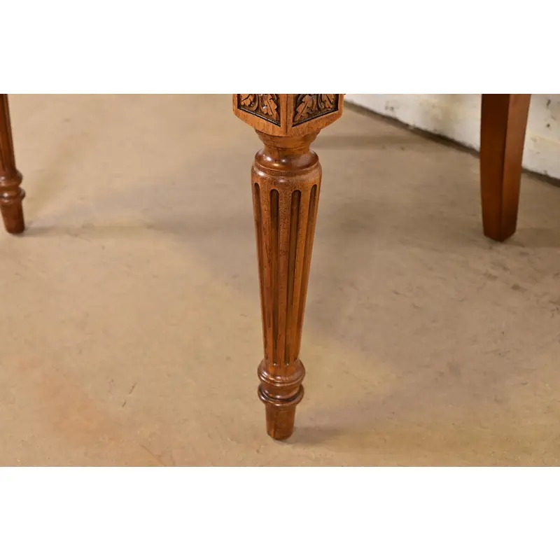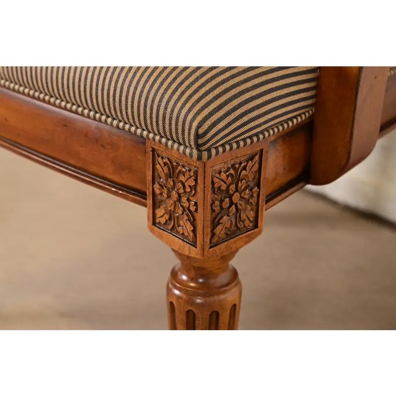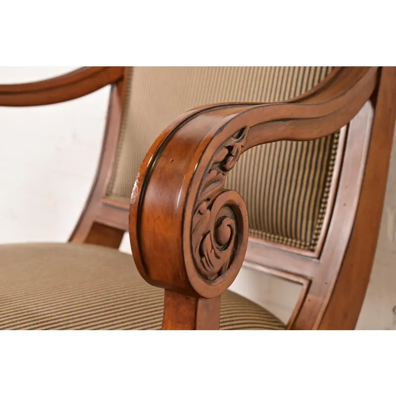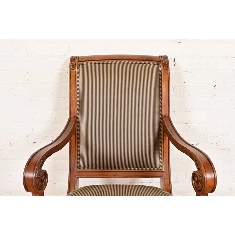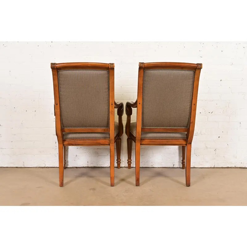Ethan Allen French Regency Louis XVI Carved Cherry Wood Upholstered Armchairs, Pair