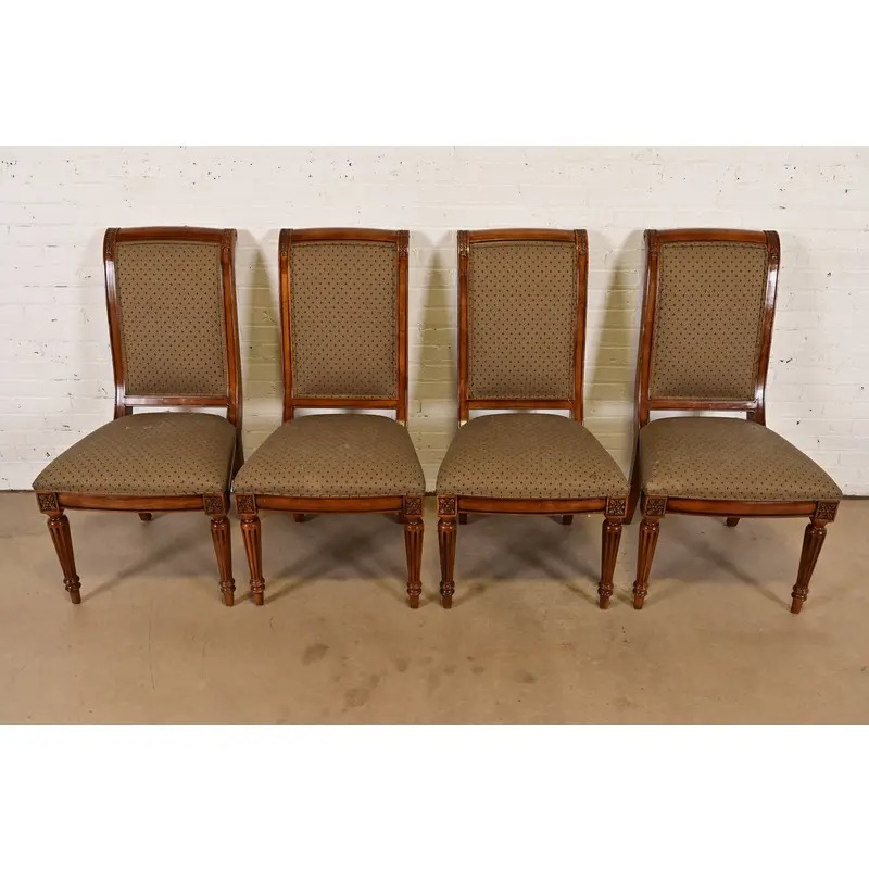 A gorgeous set of four French Regency Louis XVI style side chairs or dining chairs
