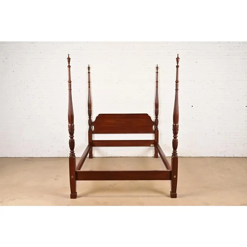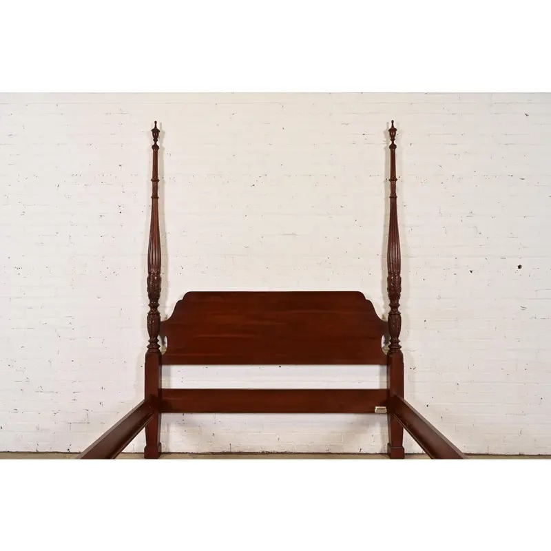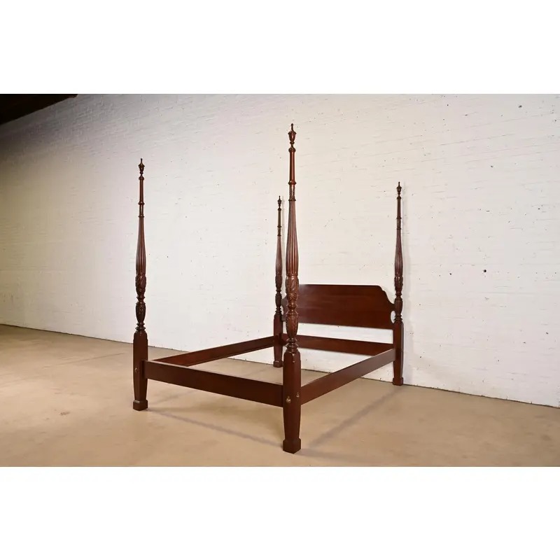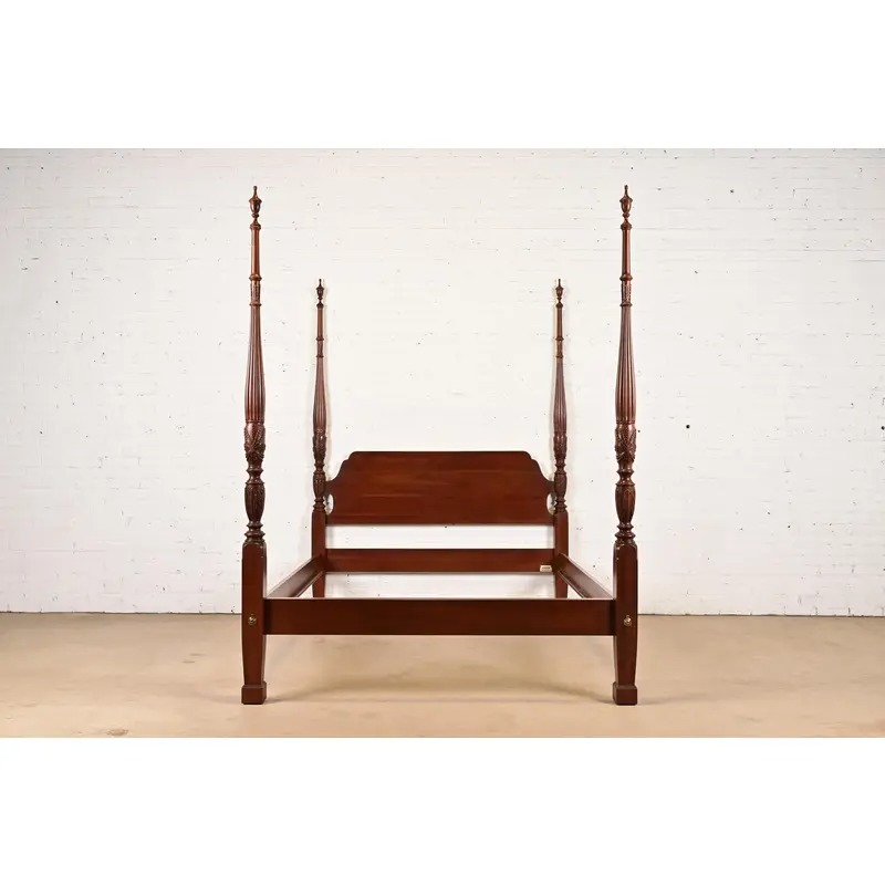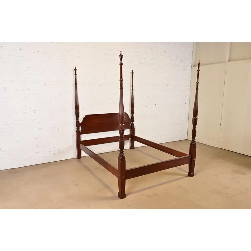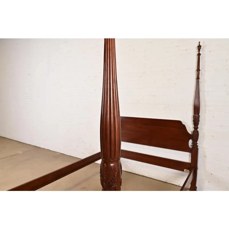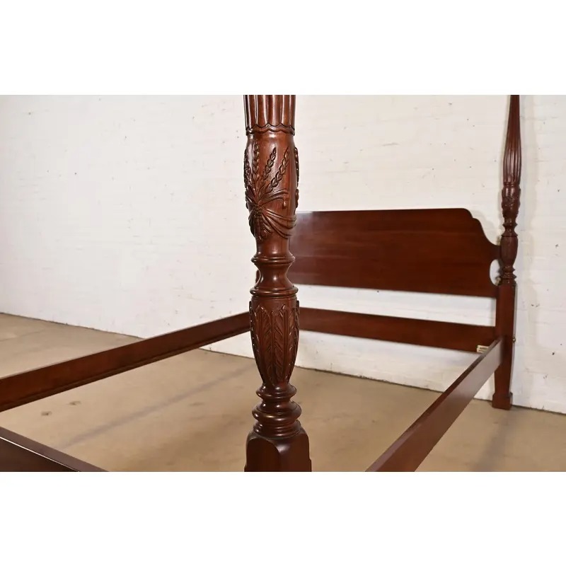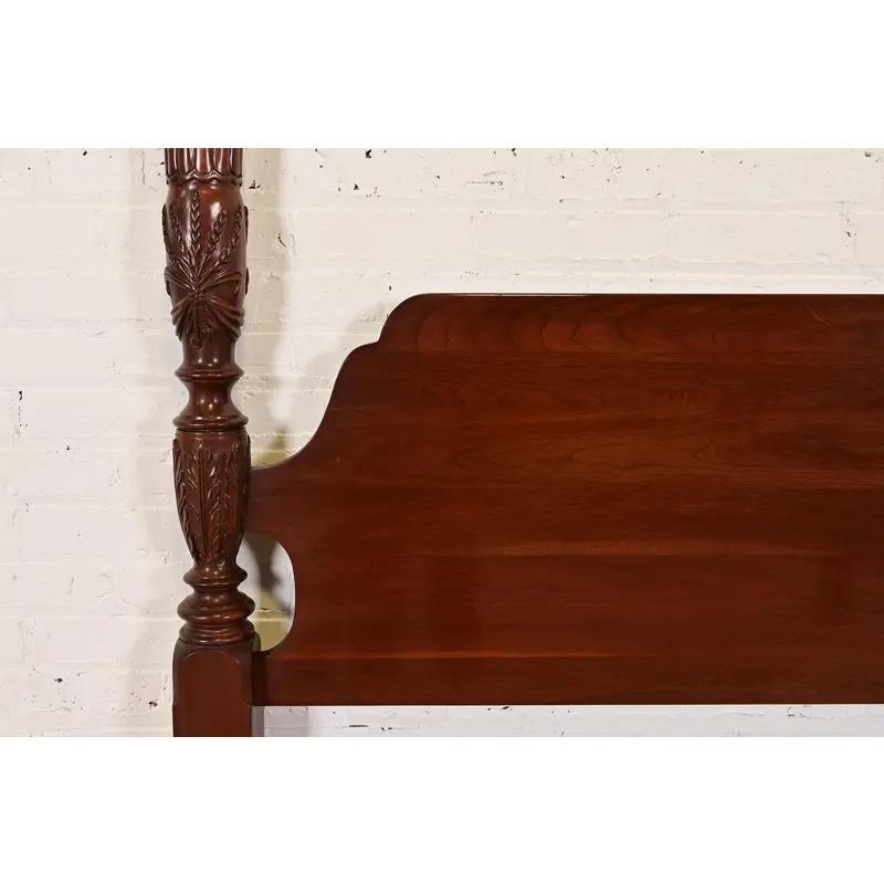 Ethan Allen Georgian Carved Solid Cherry Wood King Size Poster Bed