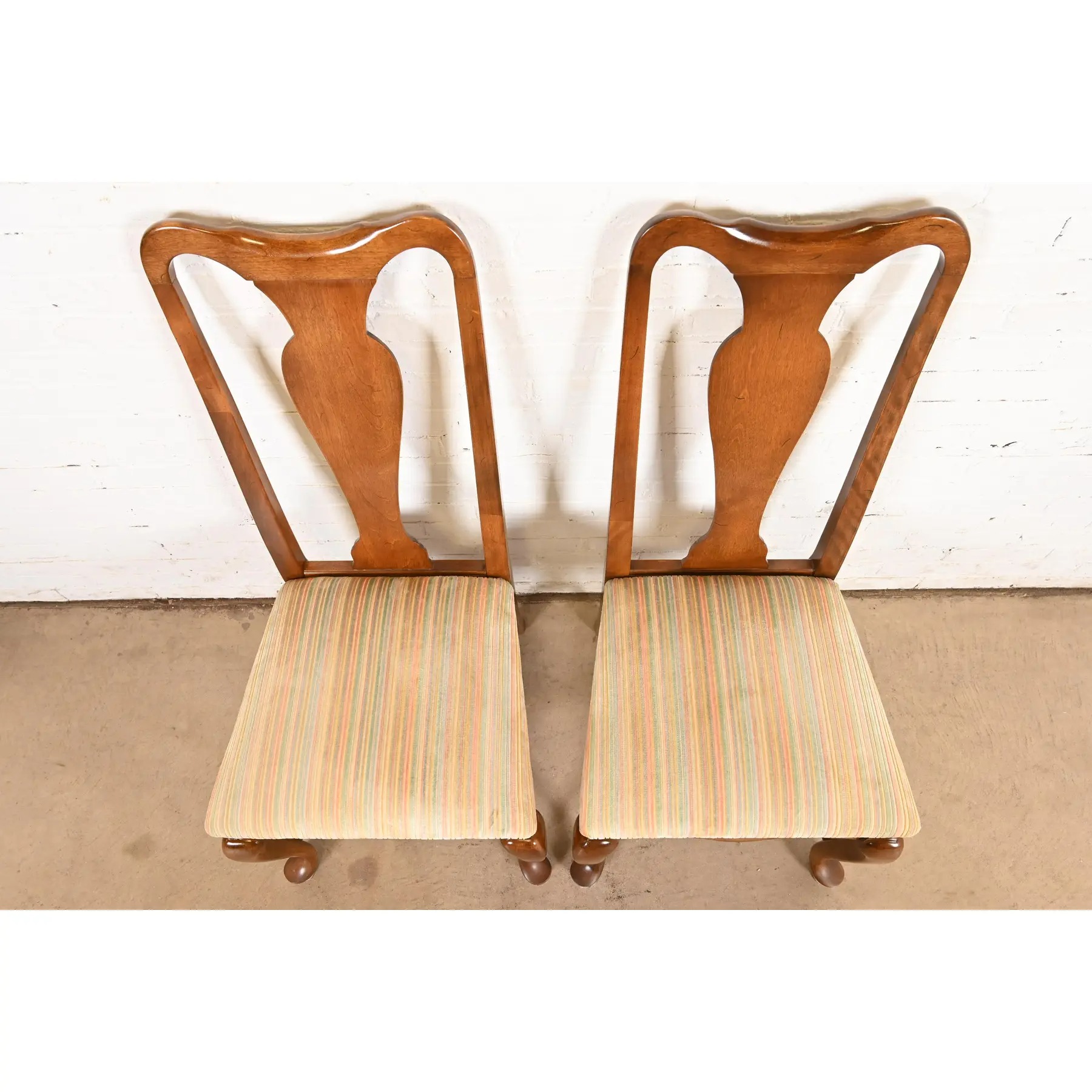 A gorgeous pair of Queen Anne or Georgian style side chairs or dining chairs