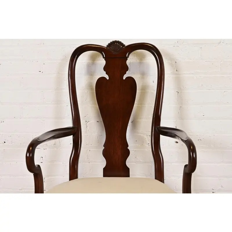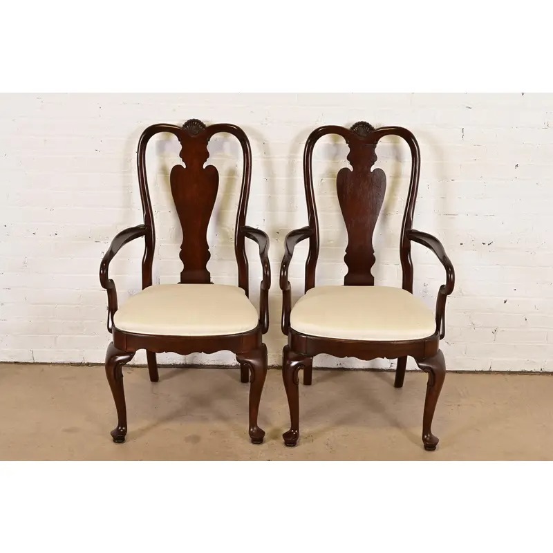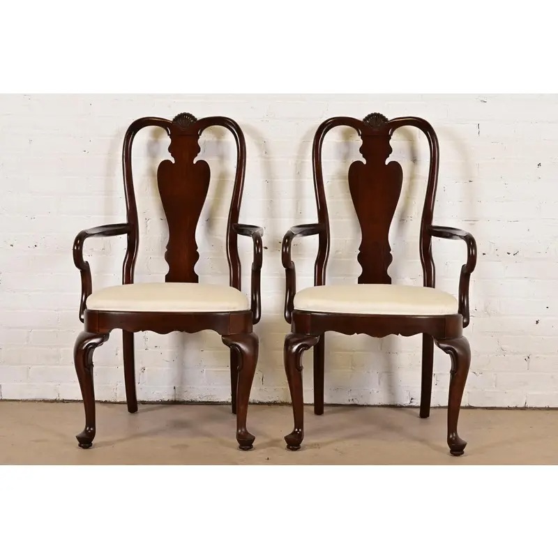 Ethan Allen Queen Anne Solid Mahogany Armchairs or Dining Captain Chairs, Pair