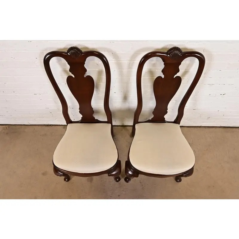Ethan Allen Queen Anne Solid Mahogany Side Chairs or Dining Chairs, Pair