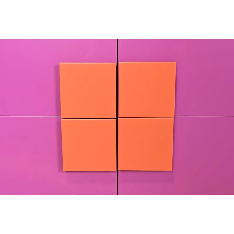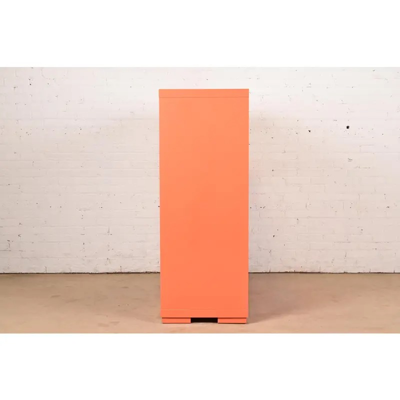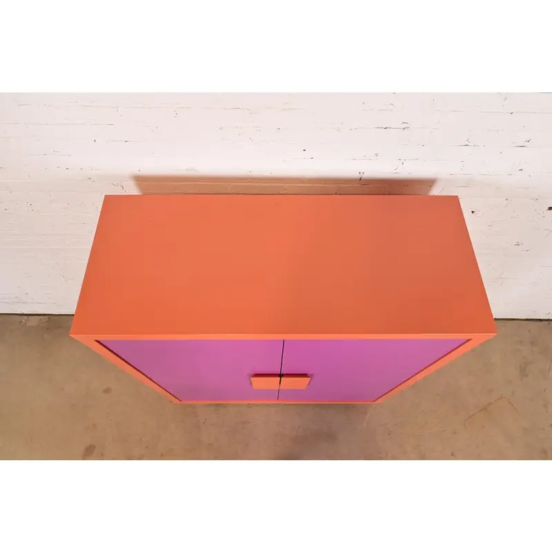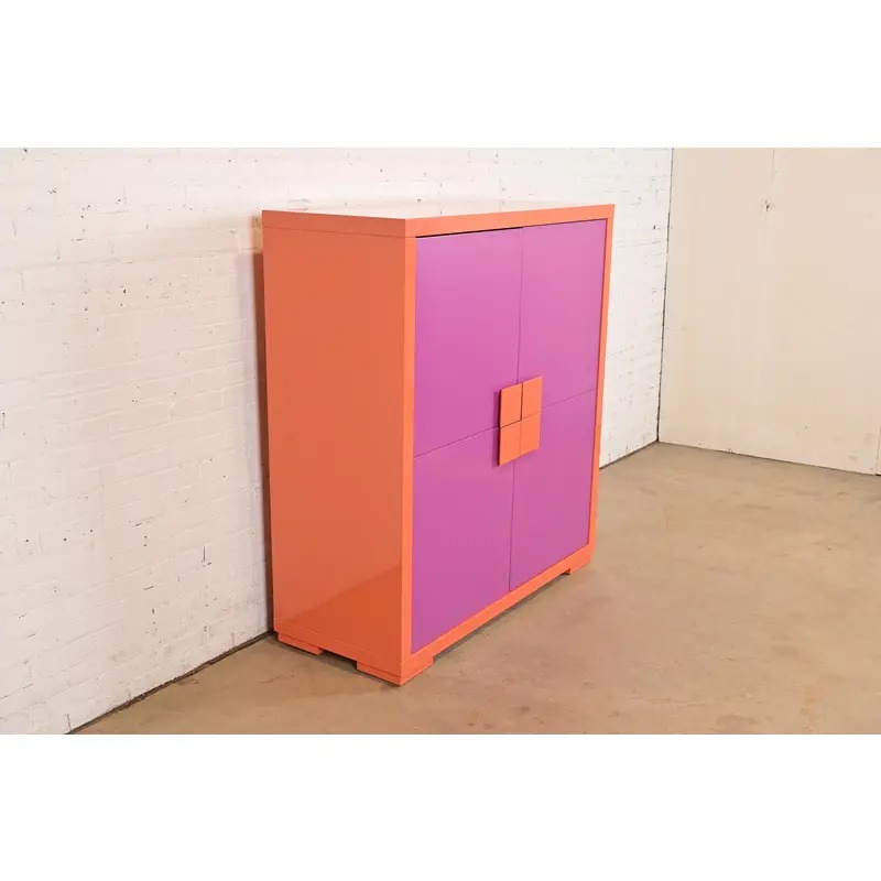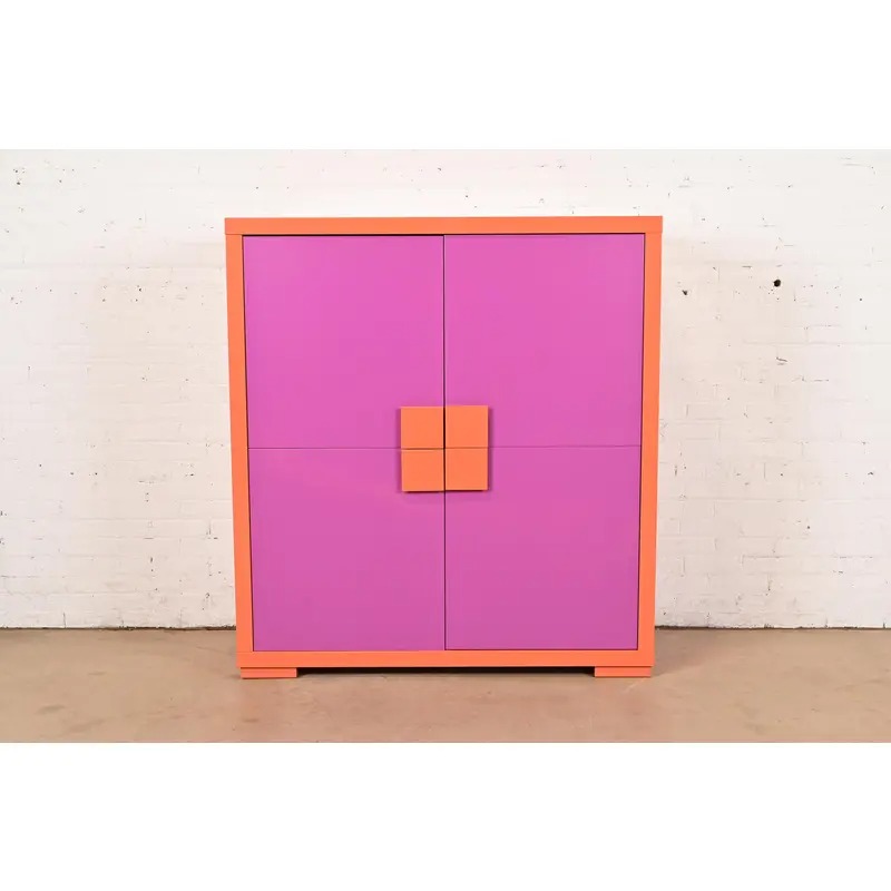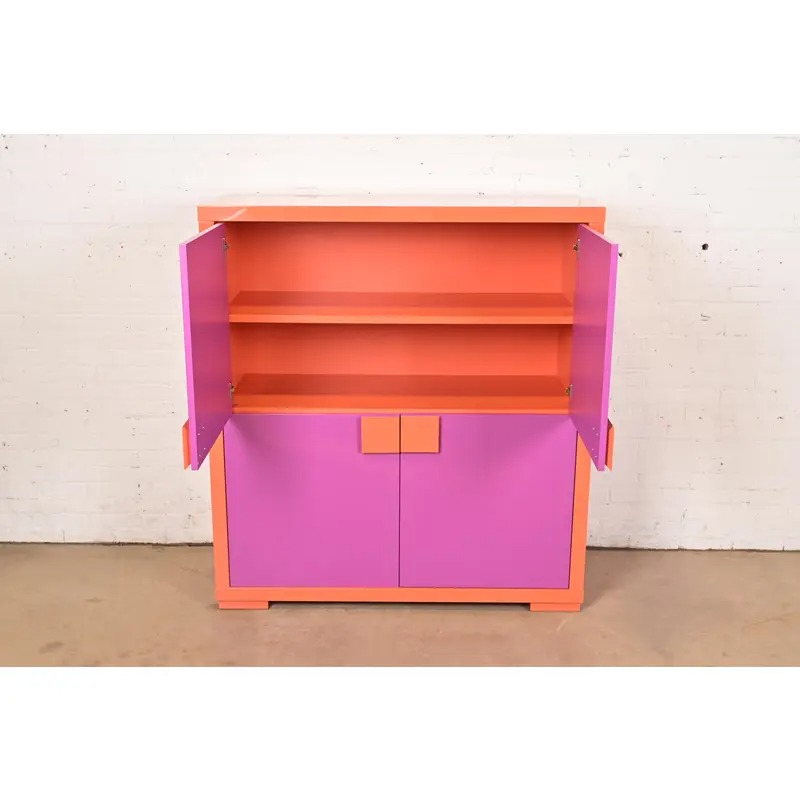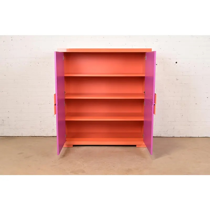 An exceptional Postmodern magenta and orange lacquered cabinet, bookcase, or bar cabinet