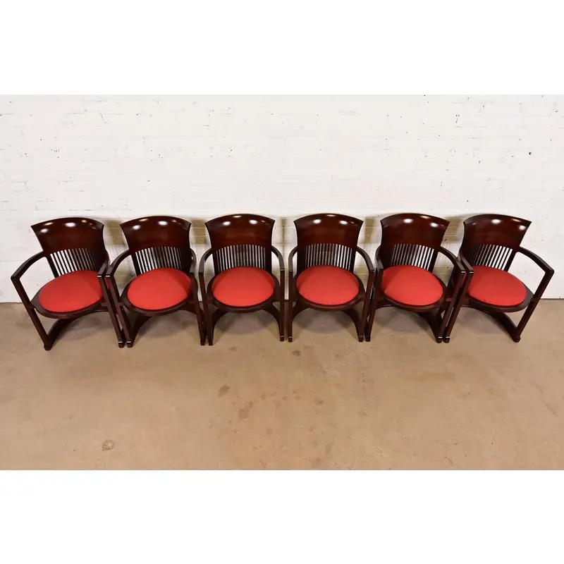 Frank Lloyd Wright for Cassina Arts & Crafts Dark Cherry Wood Barrel Chairs, Set of Six