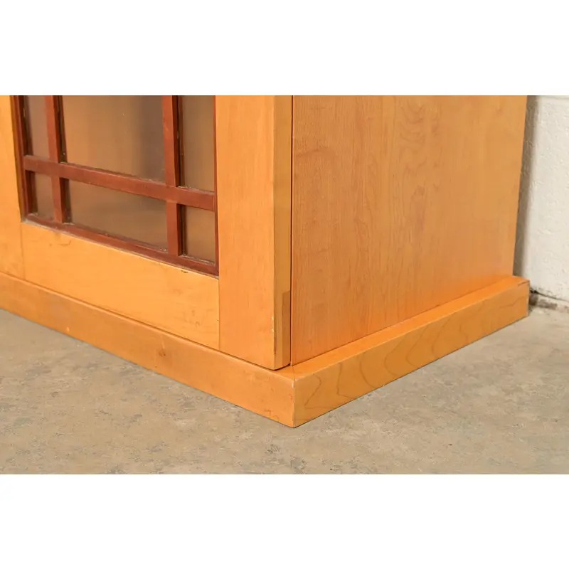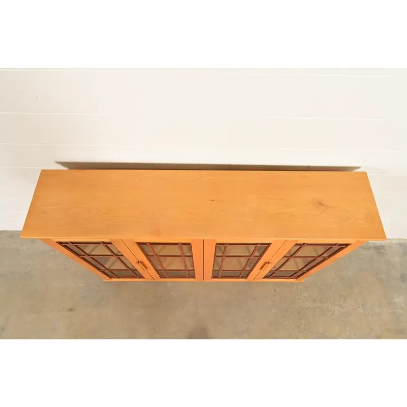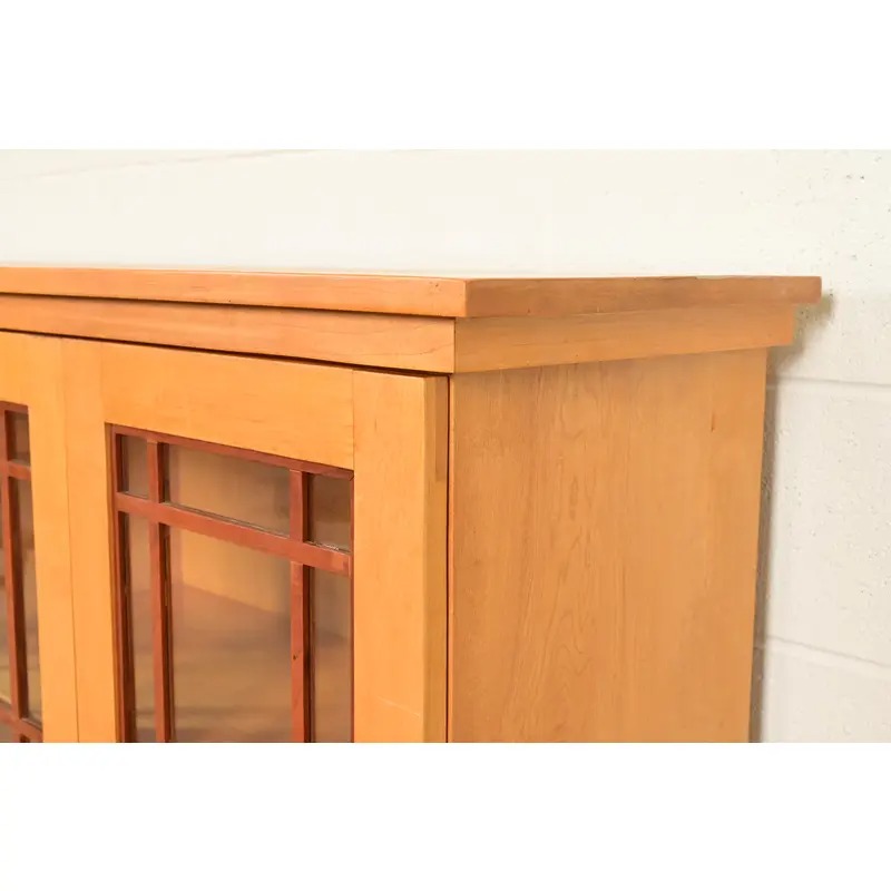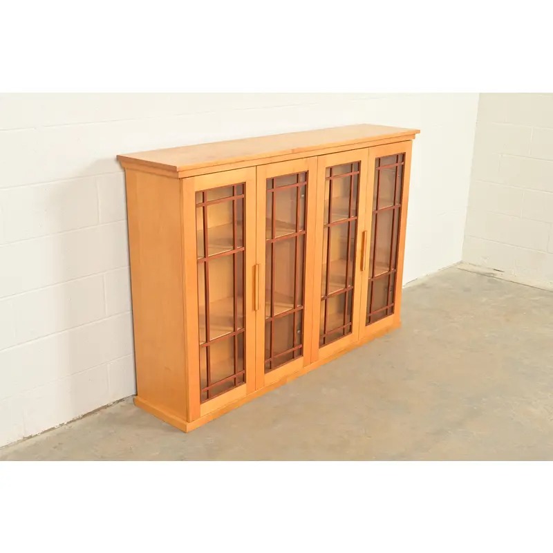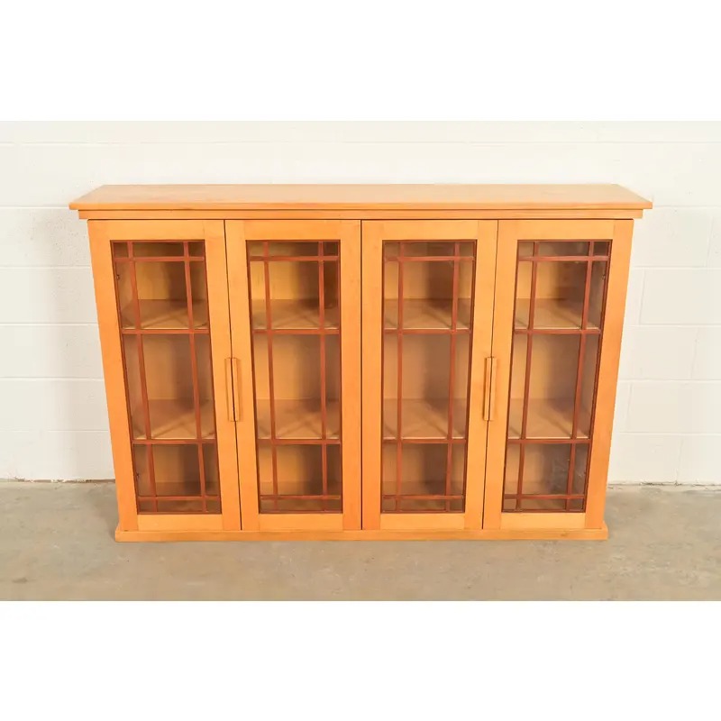 Frank Lloyd Wright Style Mission Arts & Crafts Birch and Cherry Wood Double Bookcase Cabinet