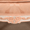Carved walnut frames, painted in cream and light pink with pink damask upholstered seats and backs.