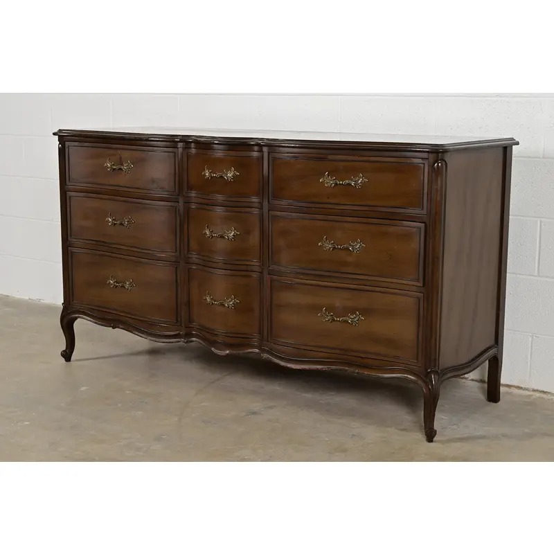 French Provincial Louis XV Carved Walnut Triple Dresser, Circa 1960s