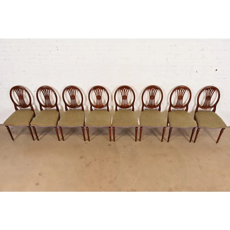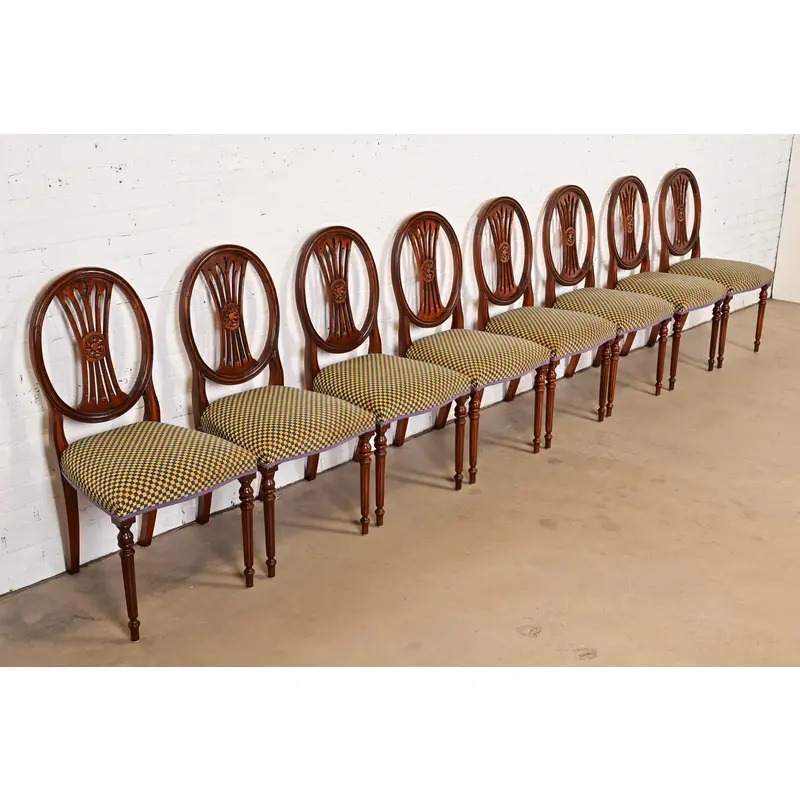 French Regency Louis XVI Carved Mahogany Dining Chairs by Bevan Funnell, Set of Eight