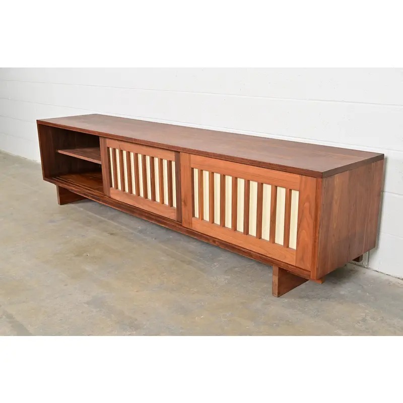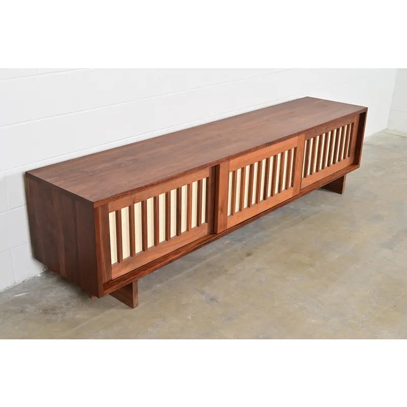 An exceptional studio crafted Organic Modern sliding door sideboard or credenza