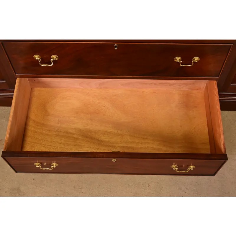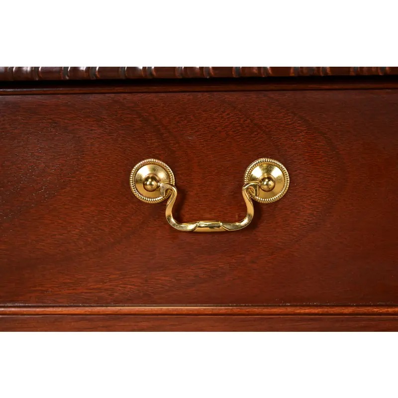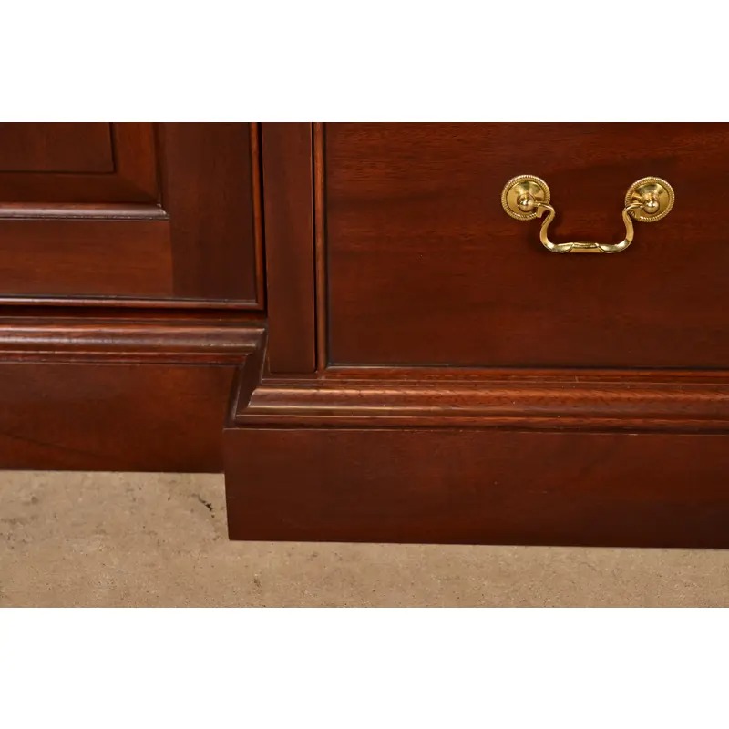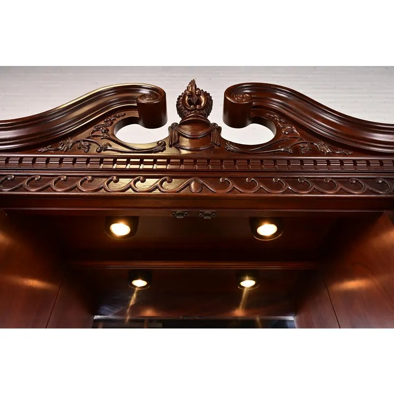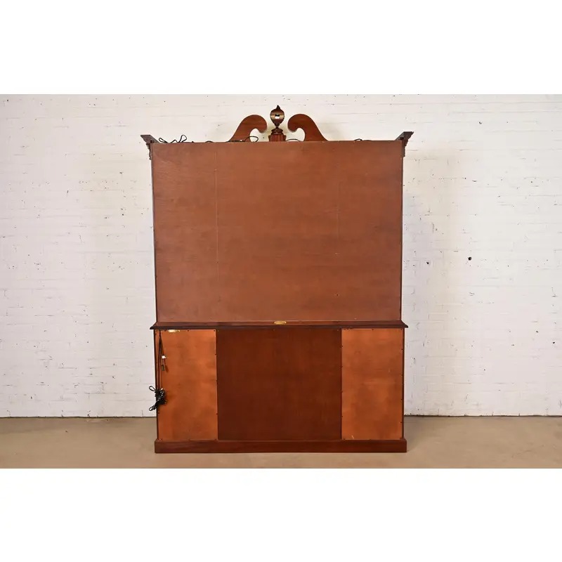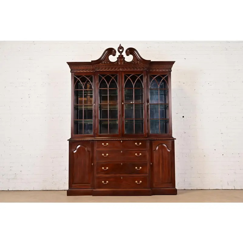Georgian Carved Mahogany Lighted Breakfront Bookcase Cabinet by Craftique