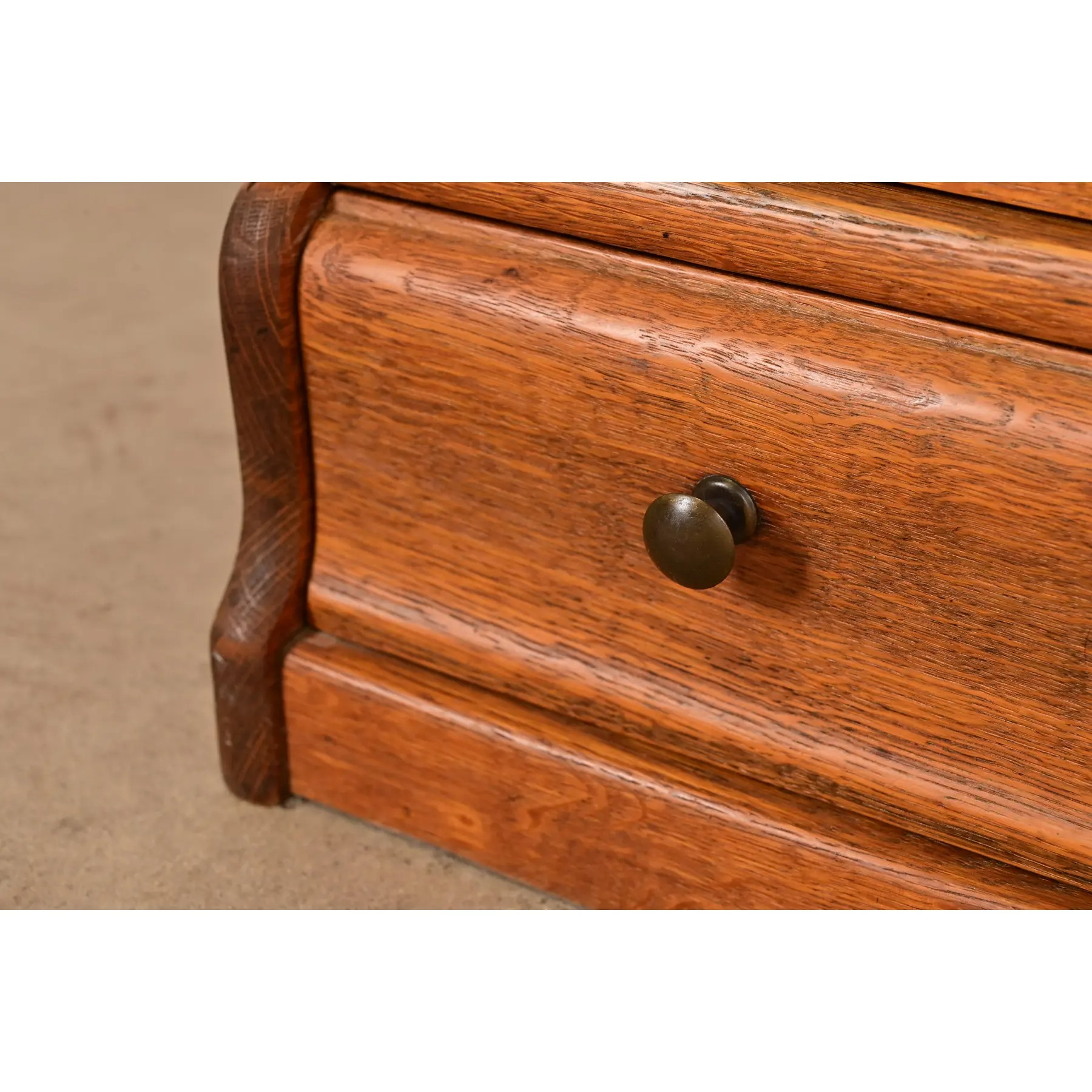 Quarter sawn oak, with glass front doors, and original brass hardware.