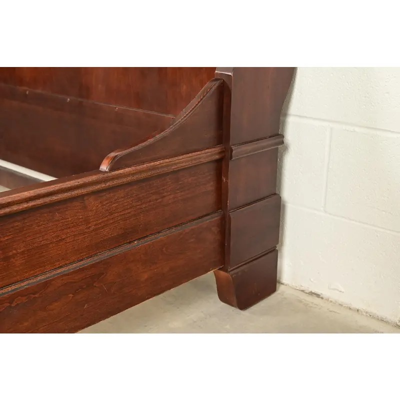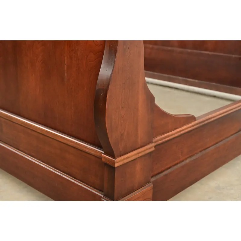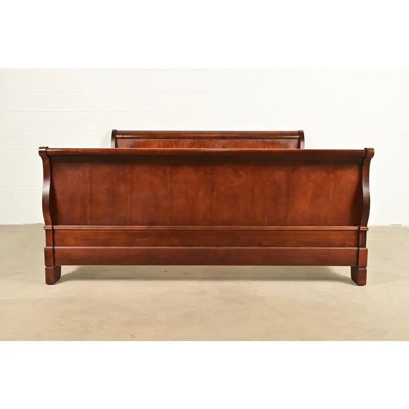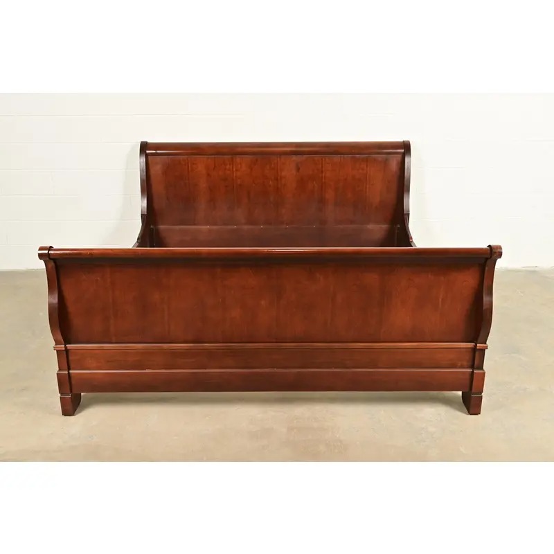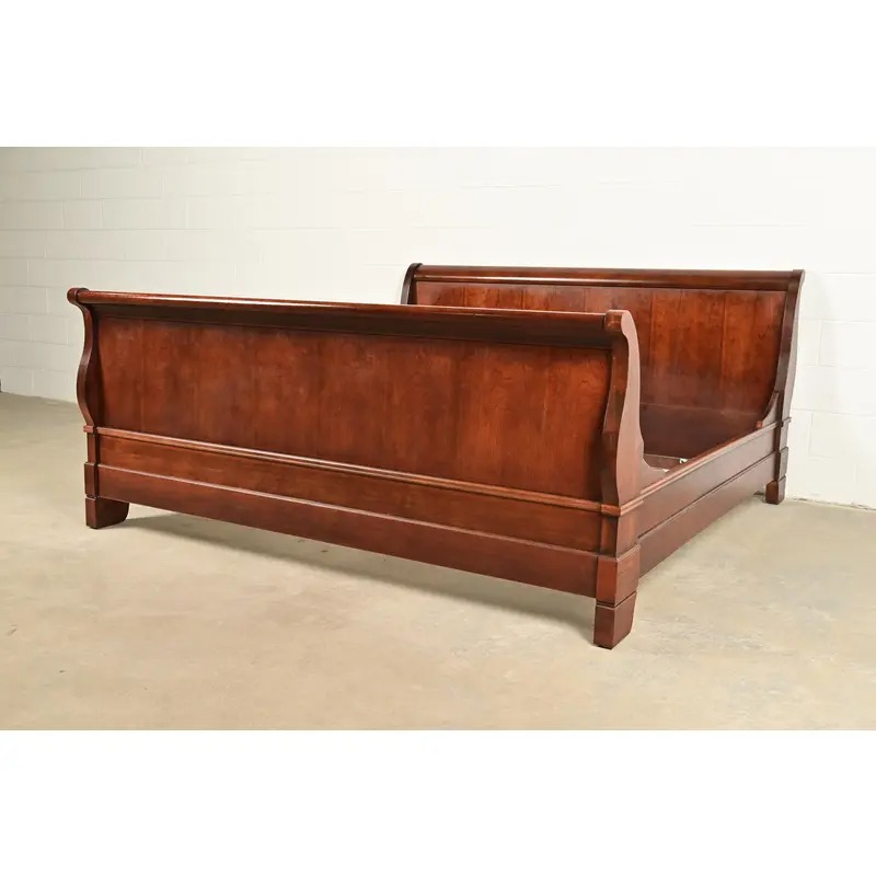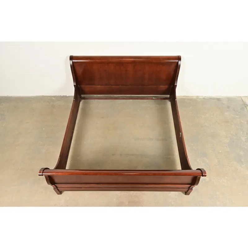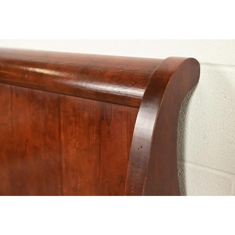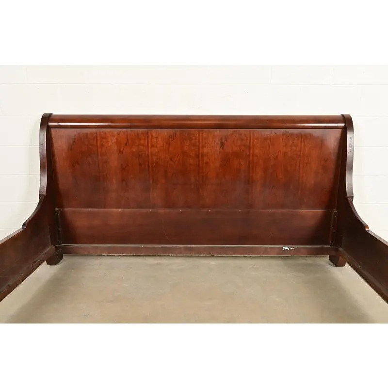 A gorgeous French Louis Philippe or Empire style carved cherry wood king size sleigh bed