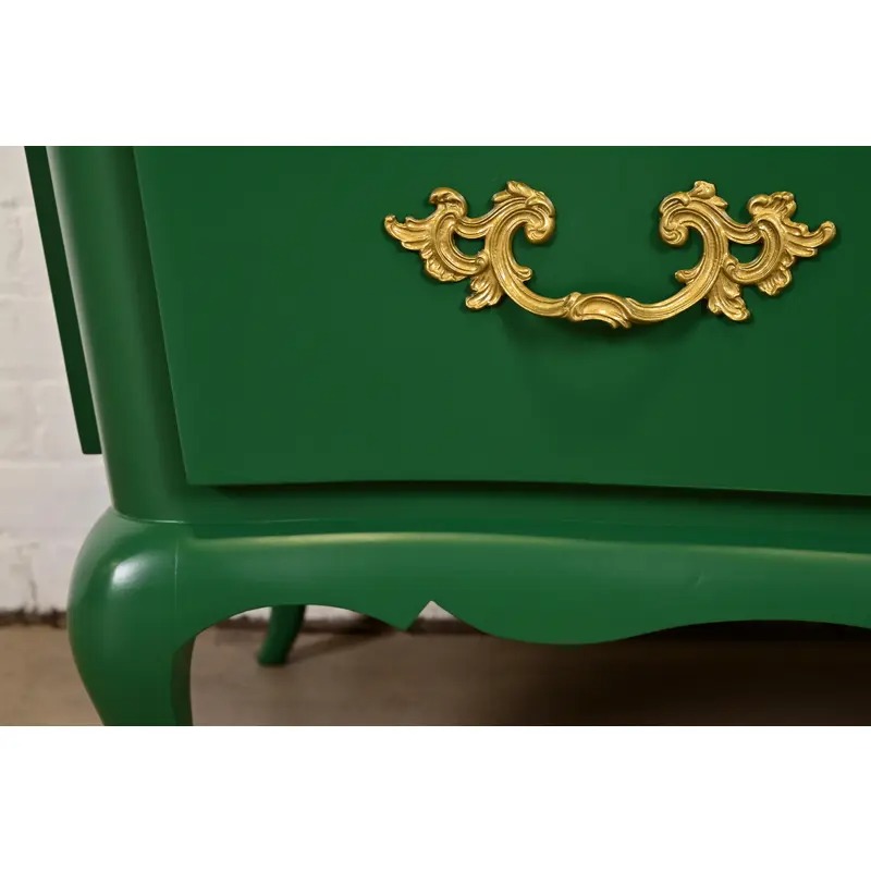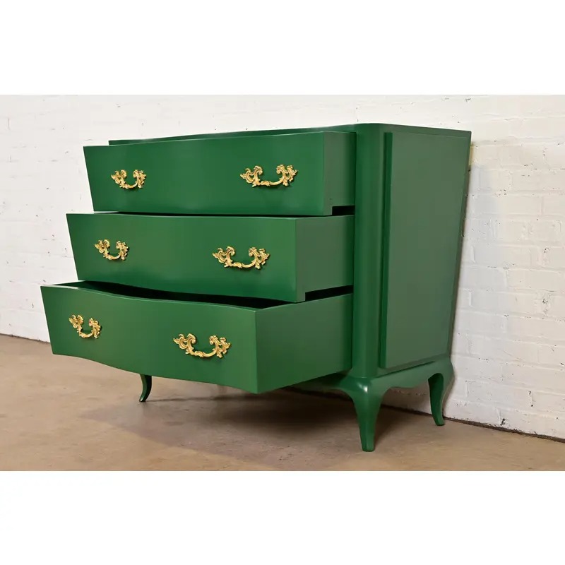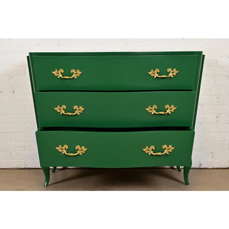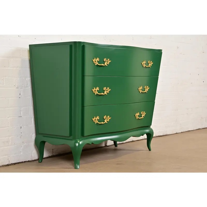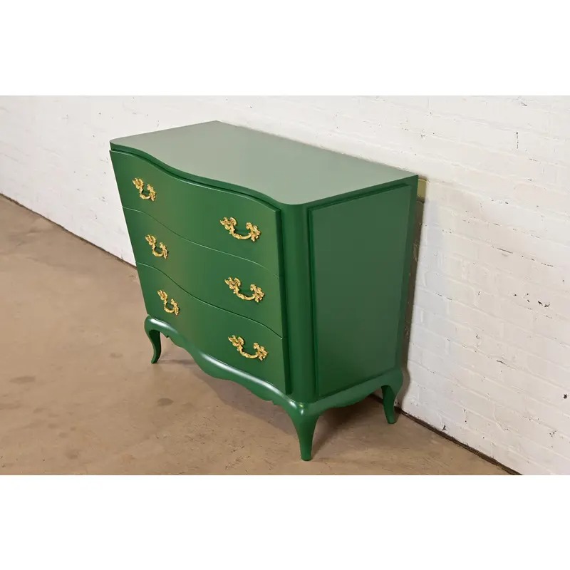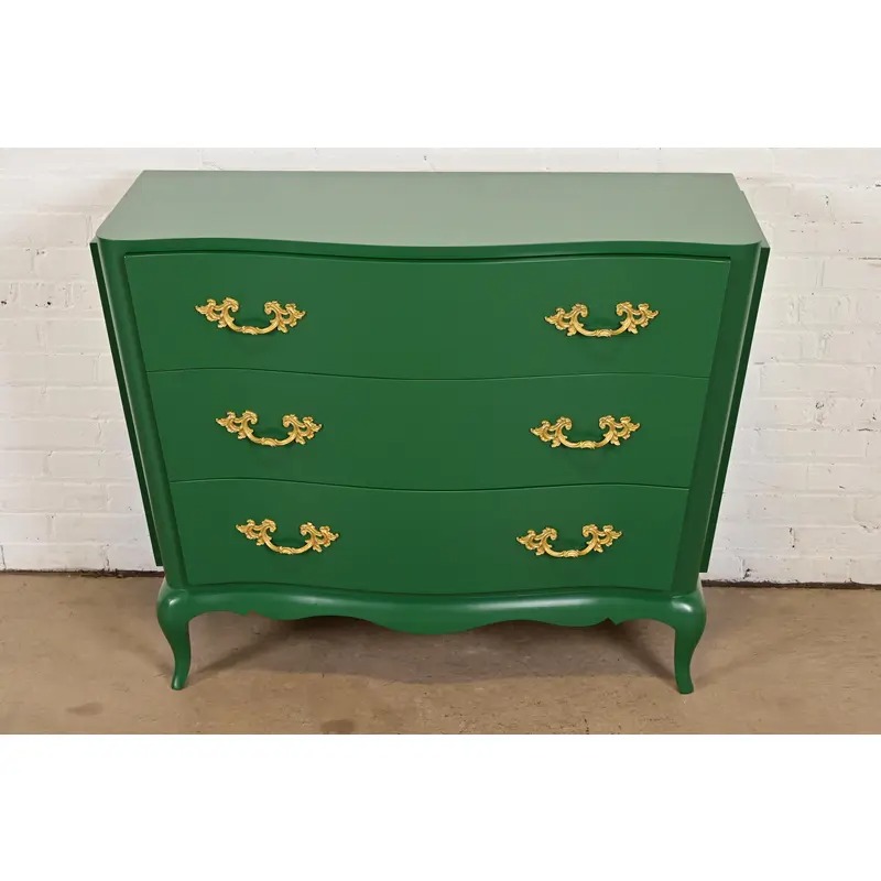 Grosfeld House French Provincial Louis XV Green Lacquered Chest of Drawers or Commode, Newly Refinished