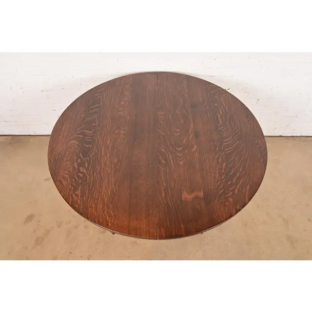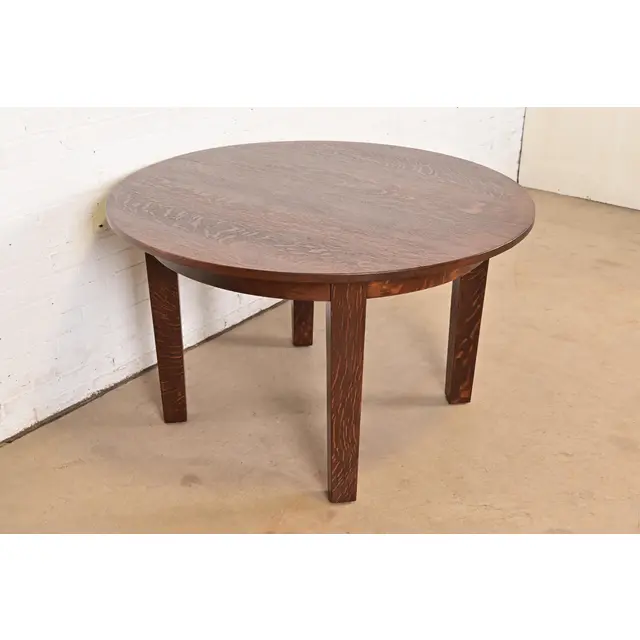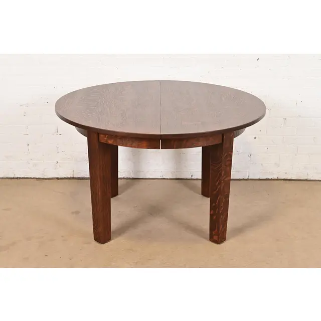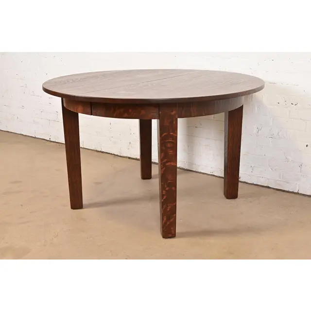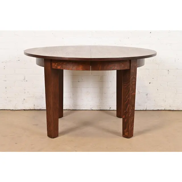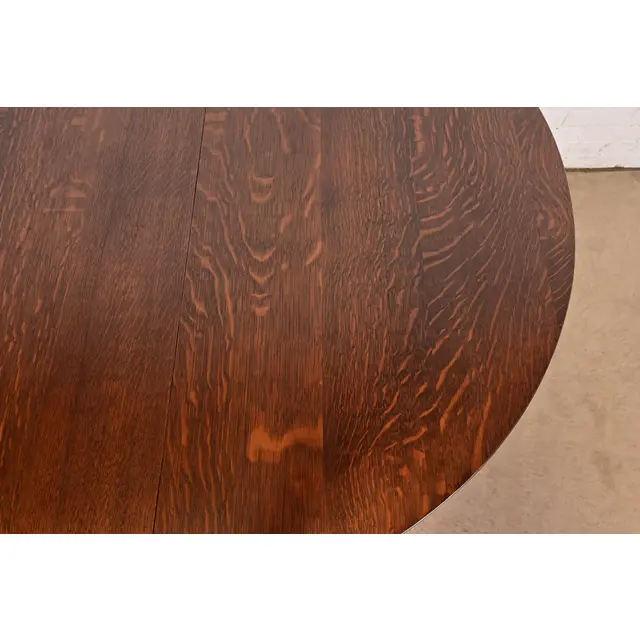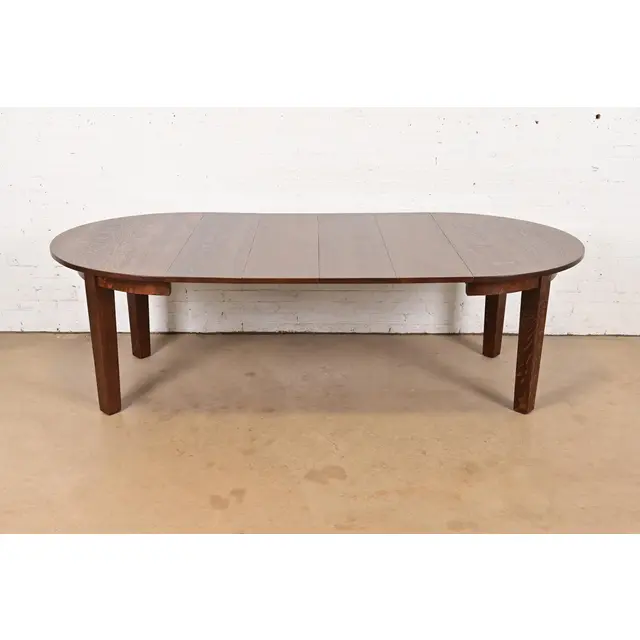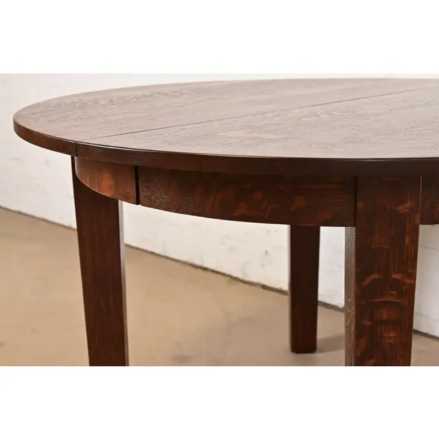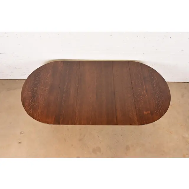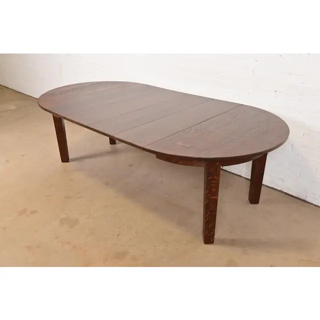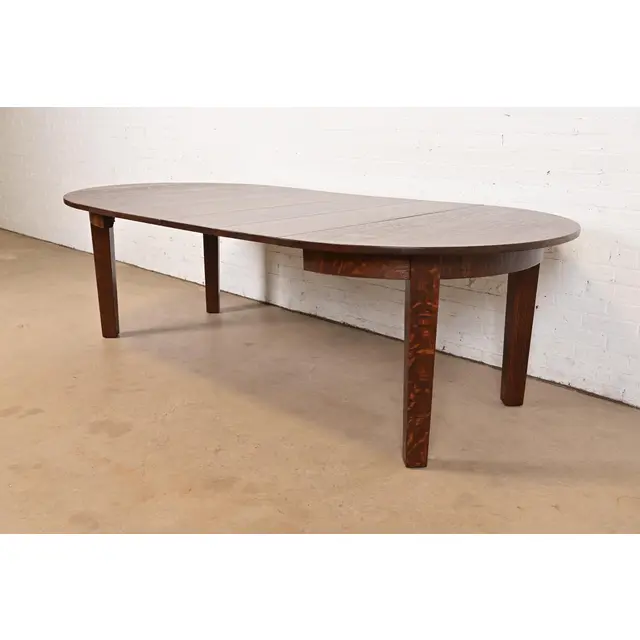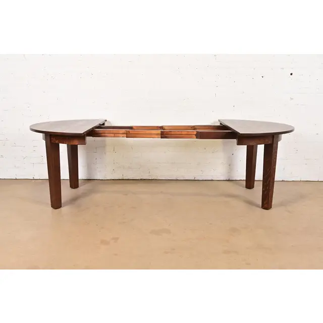 A rare and exceptional antique Mission or Arts & Crafts period quarter sawn oak extension dining table