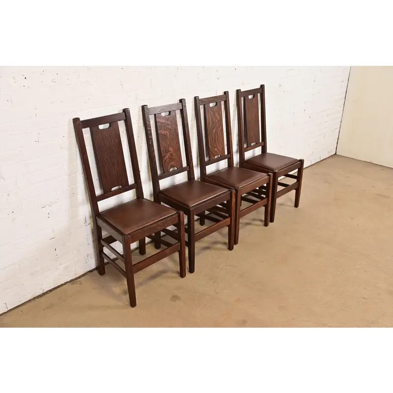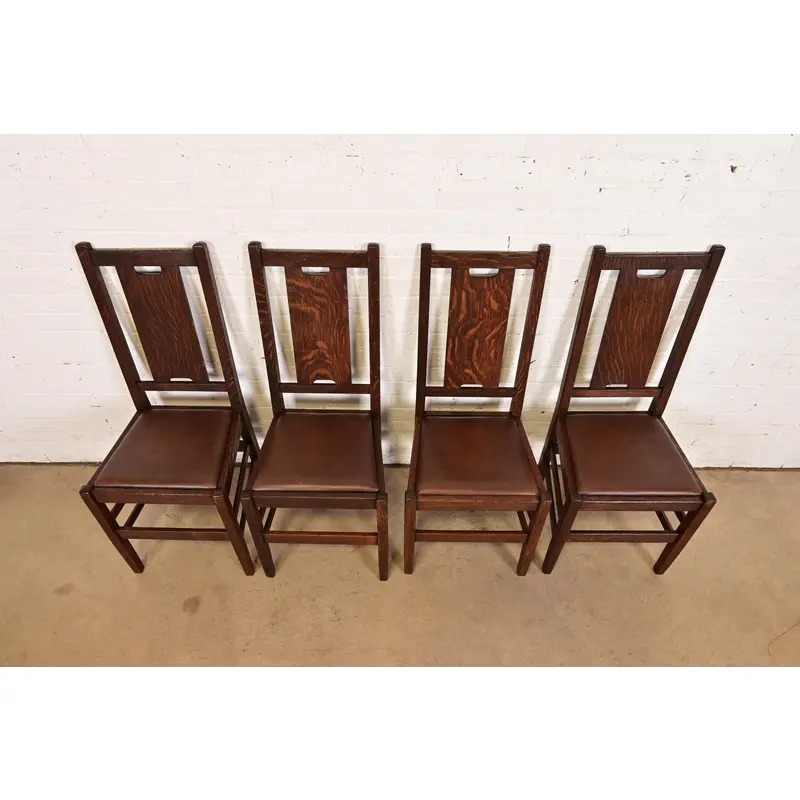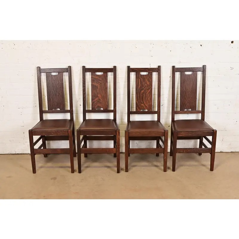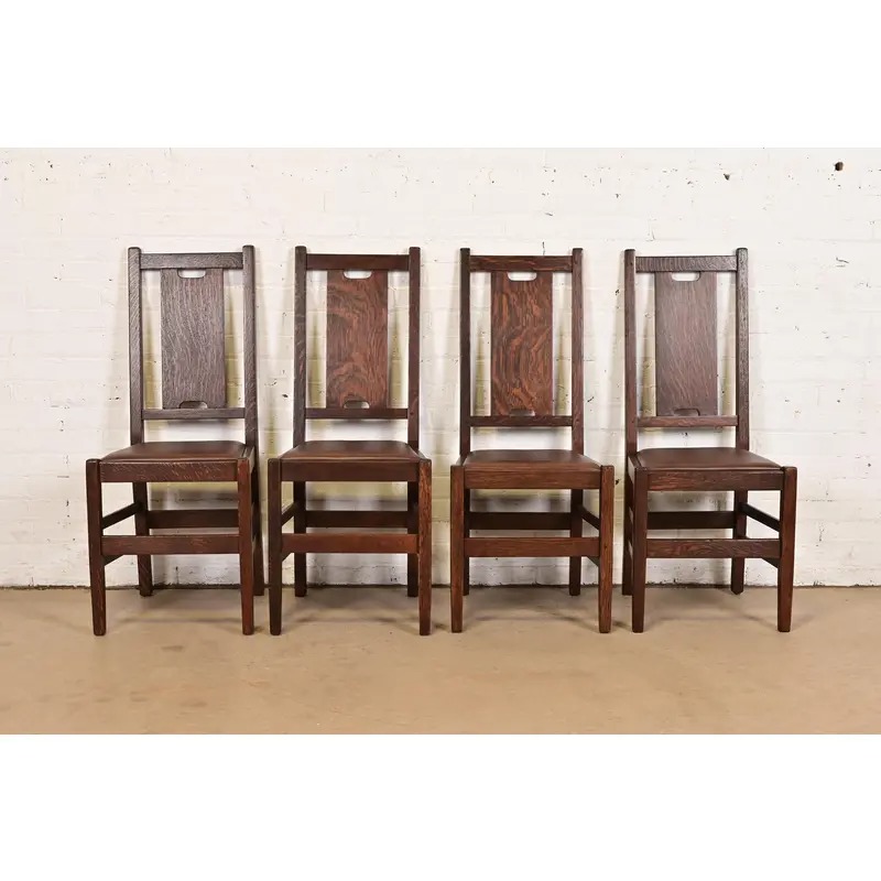 Gustav Stickley Antique Mission Oak Arts & Crafts H-Back Dining Chairs, Set of Four