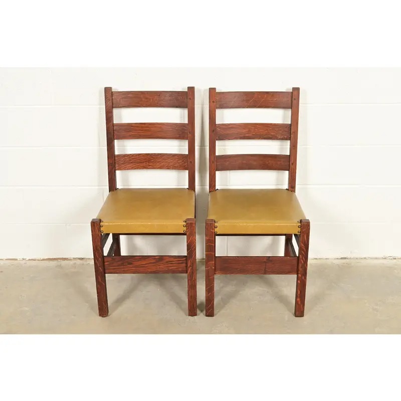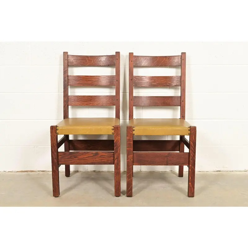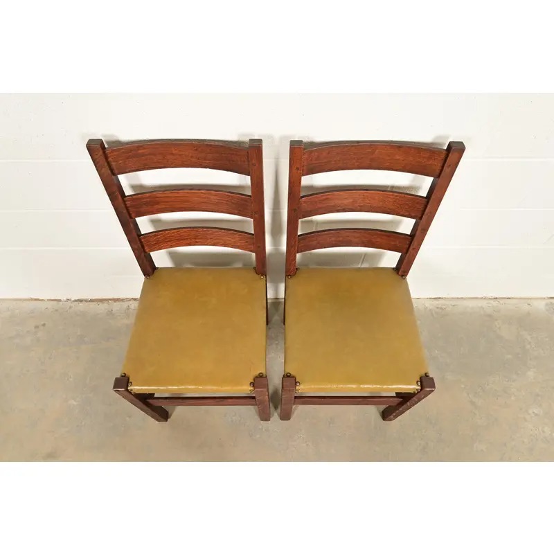 Gustav Stickley Antique Mission Oak Arts & Crafts Ladder Back Dining Chairs, Pair