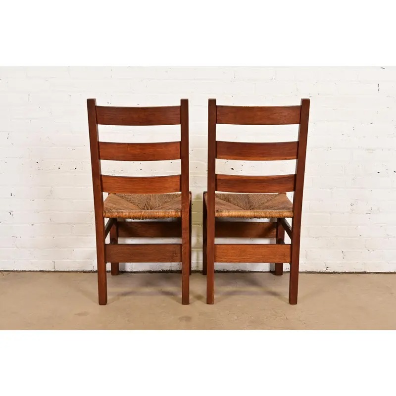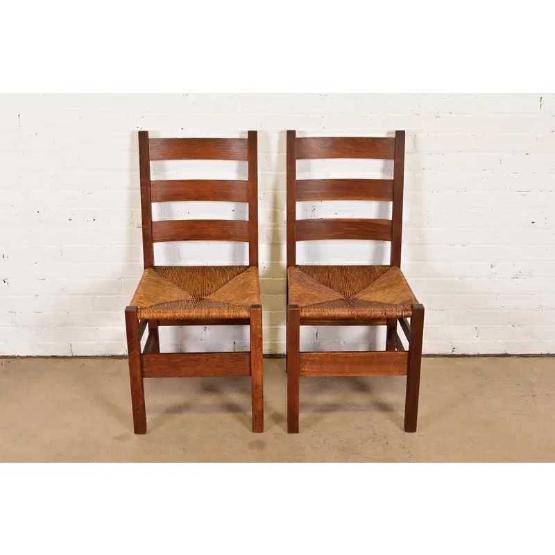 A rare and exceptional pair of Mission or Arts & Crafts period ladder back side chairs or dining chairs