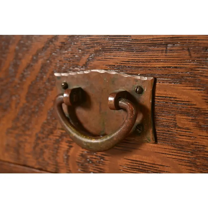 Gorgeous quarter sawn tiger oak, with original hammered copper hardware.