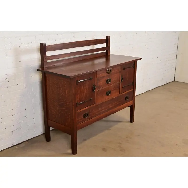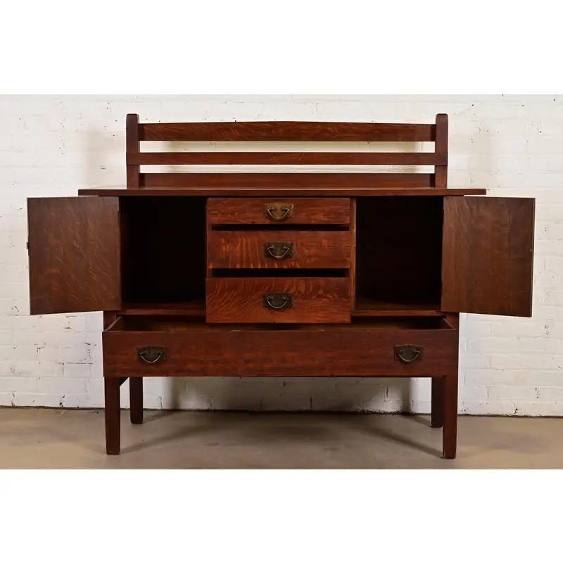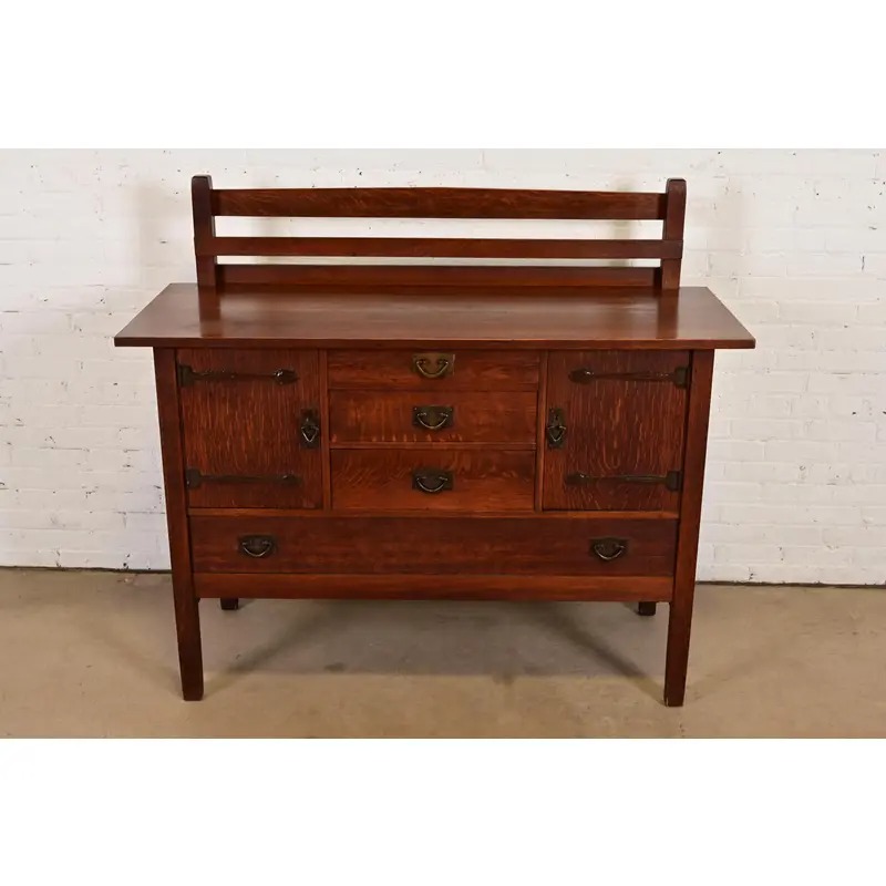 Gustav Stickley Antique Mission Oak Arts & Crafts Strap Hinge Sideboard, Circa 1910