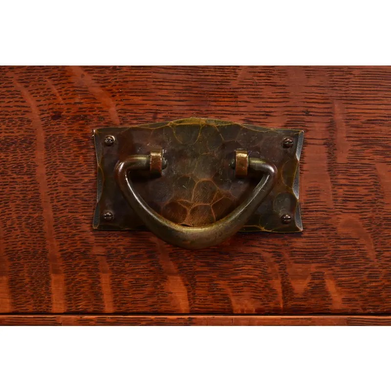Quarter sawn oak, with original hammered copper hardware. Cabinet locks, and key is included.
